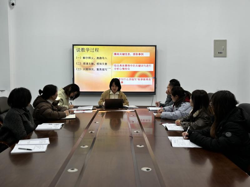 11 月 26 日,黄山市新潭小学语文教研组依托“导-师-制 +”教学教研体系,以“传帮带促成长”为教师培养目标,围绕散文《盼》开展“授课 + 说课”一体化教学研讨活动。活动由吴瑶宜老师呈现课堂教学,张悦老师解析教学设计。在教研组导师团队的统筹指导下,全体语文教师参与深度研讨,形成“实践展示-专业解析-智慧共创”的教研闭环,有效凝聚教学智慧。