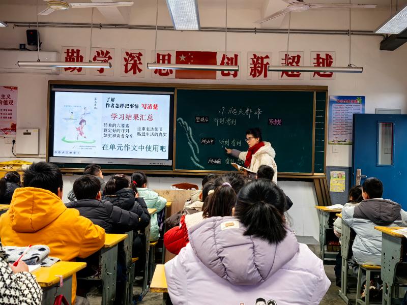 随后,专家组分为两组同步听课,分别聆听了张悦老师执教的文言文《伯牙鼓琴》与李梦杭老师执教的《爬天都峰》。张悦老师紧扣“高山流水”的经典文化意象,采用“以读促悟、以悟促情”的教学方法,引导学生在反复诵读、细致品析中,体悟文言文字词的精妙,感受伯牙与钟子期“知音难觅”的深远情感,让传统文化在课堂中得以传承与浸润。李梦杭老师则聚焦阅读与习作的方法渗透,以学生为主体,循序渐进地引导学生梳理课文脉络,掌握记事类文本的阅读技巧,并同步渗透习作方法,有效提升学生的读写综合能力。