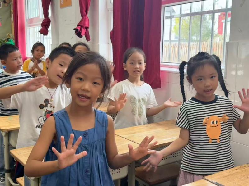 活动紧扣 “以歌育情、以乐润心” 理念,各班级结合学生年龄特点精心设计环节:低年级聚焦 “趣味唱演”,孩子们用清脆童声演绎《祖国祖国我们爱你》,教师还邀请同学上台领唱,小小的身影站在讲台前,带动全班边唱边跳,童真里满是对祖国的热爱;中高年级侧重 “情感表达”,鼓励学生自愿上台展示爱国歌曲片段,有的小组还加入简单的手势动作,用更生动的形式传递对祖国的敬意。课堂上,“歌词接龙” 活动人气高涨 —— 教师播放歌曲片段,孩子们踊跃抢答,氛围热烈。游戏后,教师借简短故事讲解歌曲背景,让孩子们在 “唱” 与 “听” 间理解爱国情怀。歌声虽短,意蕴绵长。