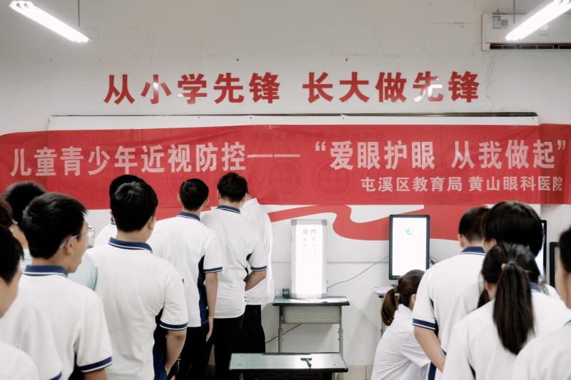 活动室内列队整齐、秩序井然,不论是刚入学海的一年级小朋友,还是沉稳备考的高三学子,都在一台台精密的仪器前,接受着“检测”,共同完成一场关于“看见”的特别活动。
