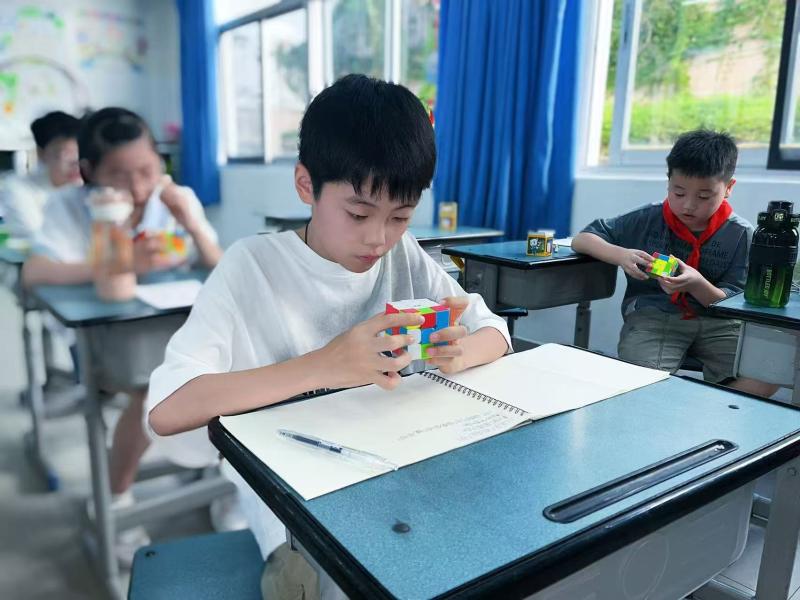 小小的魔方,是锻炼思维的“指尖教具”,更是开启逻辑思维的钥匙。社团导师结合孩子们的认知特点,从基础拼法到进阶速拧,一步步拆解技巧与逻辑。孩子们在魔方的旋转、拼接中,不仅提升手眼协调能力,更能培养空间思维与逆向推理能力,在趣味比拼中解锁“最强大脑”的潜能。