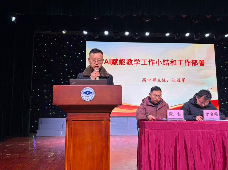 科技赋能教育,智慧点亮课堂。在AI赋能教学工作专题环节,校长助理、高中部主任汪益军以详实的数据和清晰的规划,为全体师生呈现了一幅生动的智慧教育图景。