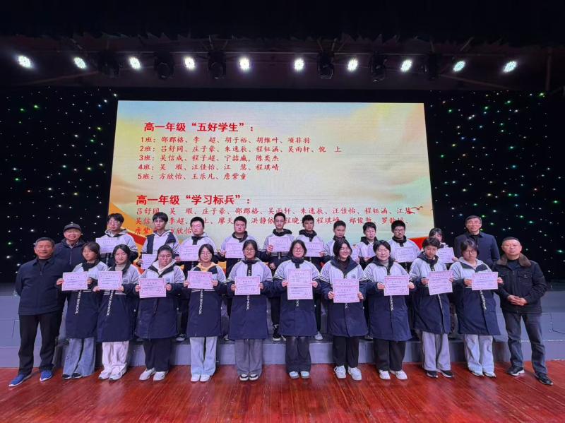 过去一学期,高中部学子笃行不怠、锐意进取,涌现出一大批品学兼优的先进典型。在热烈的掌声中,学校领导依次为荣获“五好学生”“学习标兵”“AI赋能学习标兵”称号的学生颁发荣誉证书。受表彰学子意气风发登台领奖,台下掌声经久不息,既是对奋斗者的礼赞,更是对全体同学的激励。每一张奖状都镌刻着日夜兼程的汗水,每一次颁奖都传递着见贤思齐的力量。