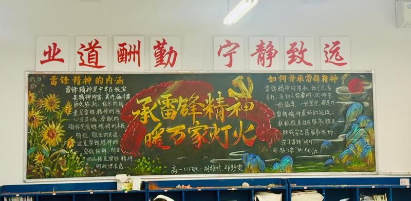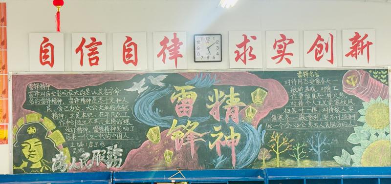 学雷锋主题黑板报评比活动率先拉开帷幕,全校各班级踊跃参与,师生同心协力打造特色文化阵地。各班围绕雷锋生平事迹、精神内涵、新时代学雷锋案例等核心内容,精心构思版面布局,工整书写宣传标语,巧妙搭配插画装饰。