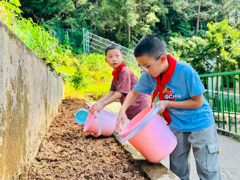 劳动课上,导师们全程手把手引领,带着孩子们亲身参与松土、播种、浇水、除草的每一个劳动环节。一双双原本怕脏躲闪的小手,渐渐变得勇敢有力,主动捧起湿润的泥土;一双双懵懂的眼睛,也在专注照料中变得坚定明亮。这场沉浸式劳动,不仅锻炼了孩子们的动手能力,更在泥土深处,为他们埋下了责任、合作与坚持的种子,让“导-师-制+”的陪伴,成为劳动路上的底气。