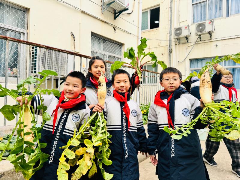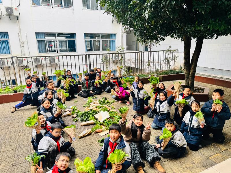 寒假前,“开心农场”迎来了丰收的喜悦,也为孩子们的劳动课举办了一场特别的“蔬菜毕业礼”。在导师的指导下,孩子们小心翼翼地采摘下自己亲手培育的蔬菜,进行简单包装。“这颗送给妈妈!”“这捆和爸爸一起下厨!”一句句真诚的话语,一个个暖心的举动,让劳动成果更有分量,让分享的喜悦加倍升温,也让“感恩”的种子,在导师的引导下生根发芽。