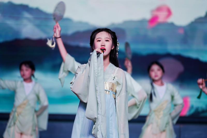 本场晚会最鲜明的特色,在于传统文化与当代校园生活的创造性融合,让中华优秀传统文化在创新表达中焕发生机。追风团队带来的舞蹈《一夜鱼龙舞》,以曼妙舞姿再现“凤箫声动,玉壶光转”的浪漫意境,引领观众穿越千年灯火;知行团队的歌伴舞《小池》,则勾勒出一幅“泉眼无声惜细流,树阴照水爱晴柔”的清新画卷,尽显江南诗意。