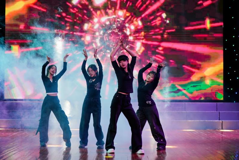 当晚19时,动感灯光秀如霓虹流转,光影交织间勾勒出青春的轮廓。随着节奏强劲的音乐响起,高二4班汪琪、谢畅领衔的团体现代舞《Killin it Girl》惊艳登场,台下掌声雷动,欢呼声此起彼伏。节目落幕之际,往届校友跨越山海送来的祝福视频温情上线——熟悉的面孔、真挚的寄语,字里行间满是对母校的眷恋与对学弟学妹的期许。