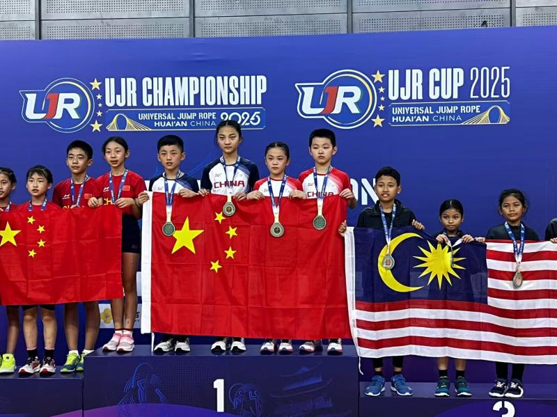8月15-18日2025年UJR世界跳绳公开锦标赛暨世界杯比赛在江苏省淮安市开赛,来自安徽省黄山市黄山学校的小将郑筱冉以超凡绝伦的技艺,力压群雄,在女子组10—12岁项目中一举夺得4×30秒单摇接力冠军,2x30秒双摇接力季军,90秒单摇季军!这不仅是个人和团队集体的荣耀时刻,更是向全世界展示了中国速度与中国力量在跳绳领域的绝对实力。