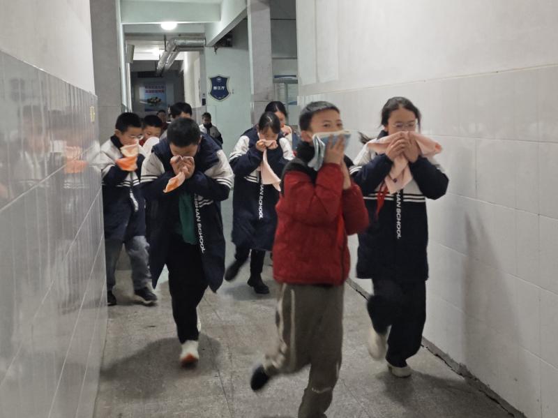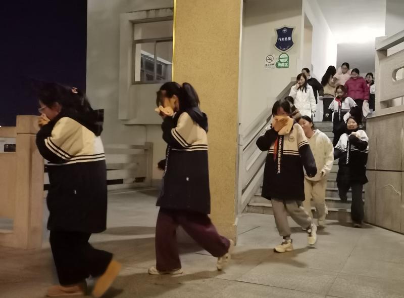 晚上八时三十分,一声急促的警报声在宿舍楼内响起,演练正式开始。各楼层生活老师迅速到位,沉着指挥。同学们在老师的引导下,按照预定疏散路线,用湿毛巾捂住口鼻,有序地从宿舍向指定安全区域撤离。整个过程中,全体寄宿生行动迅速、配合默契,未发生拥挤、踩踏等现象。