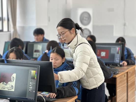 入职仅两年的青年教师程晓静以计算机平面设计专业为依托,带来《重塑黄山名茶的东方美学》公开课。课程直击学生创意设计中“找图难”“技术焦虑”的现实痛点,以黄山名茶包装设计真实商业项目为主线,系统指导学生运用 AI 生图工具与“提示词公式”开展创作。教学过程中,教师引导精准、点评专业,充分调动学生主观能动性,成功树立“人为核心、AI 为辅助”的设计理念,让技术服务于创意表达,切实强化学生在AI时代的专业自信与主体地位。