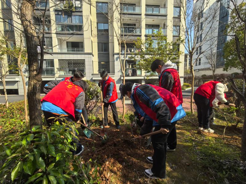 3月12日,校团委选派10名学生志愿者前往高铁社区书香雅苑小区,参加由社区组织的义务植树活动。在社区社会导师的现场指导与示范下,同学们分工协作、默契配合,挥锹铲土、扶苗填坑、压土浇水,每一道工序都认真细致。一棵棵新苗迎风挺立,不仅为小区增添盎然生机,更通过志愿服务展现了积极向上、乐于奉献的青春风貌。
