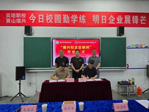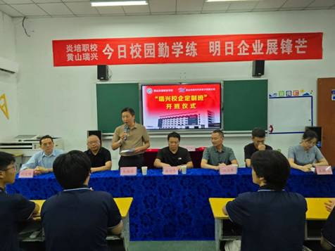 2025年6月19日下午,黄山炎培职业学校与黄山市瑞兴汽车电子有限公司合作开设的2025级“瑞兴校企定制班”在学校九龙实训基地正式开班。