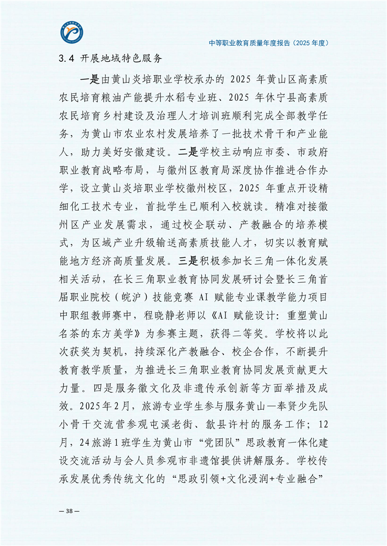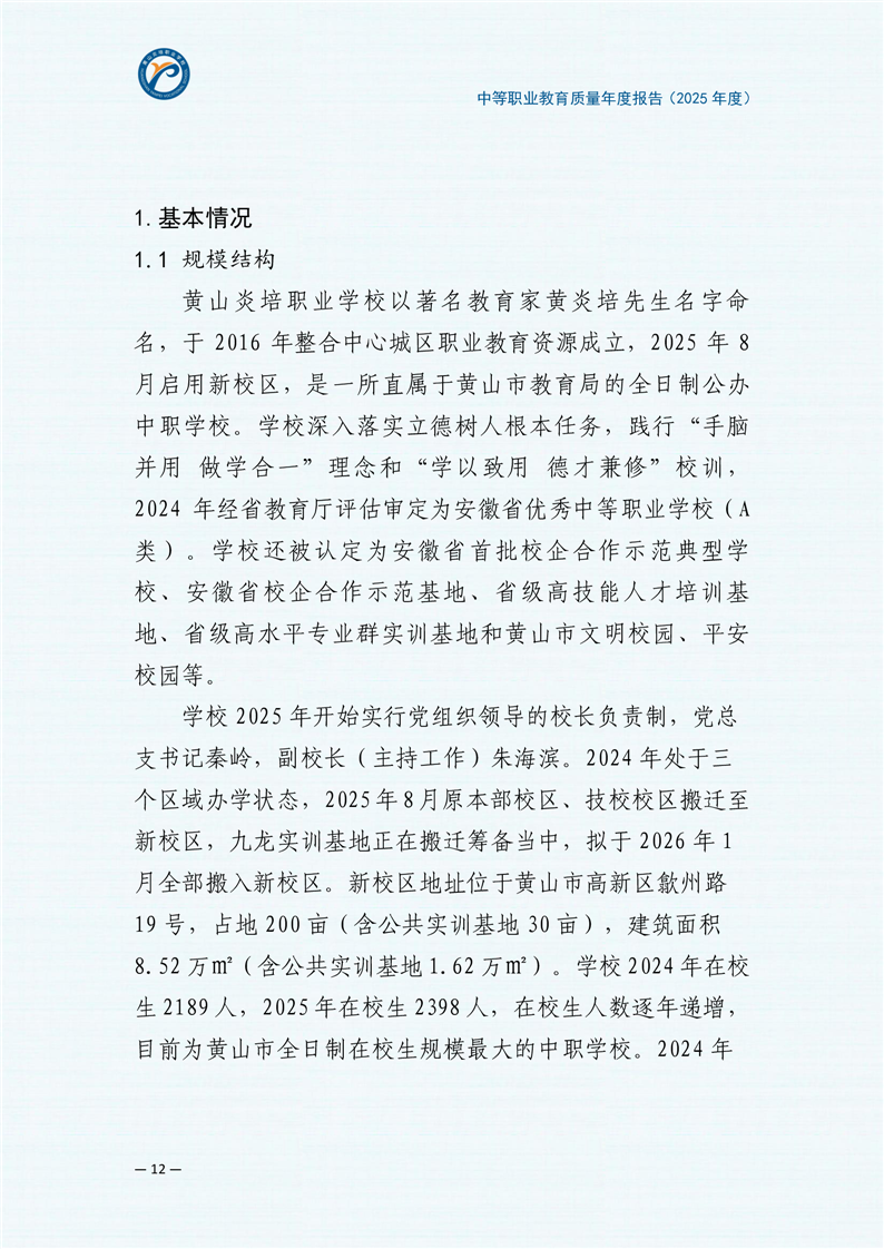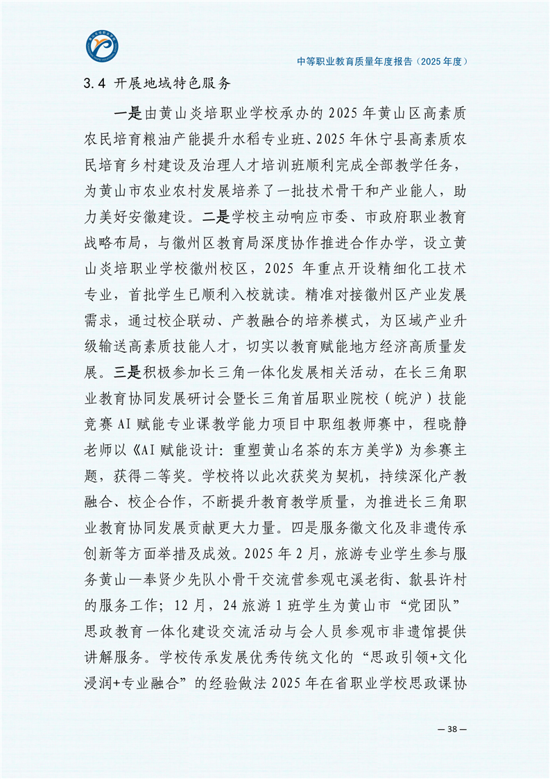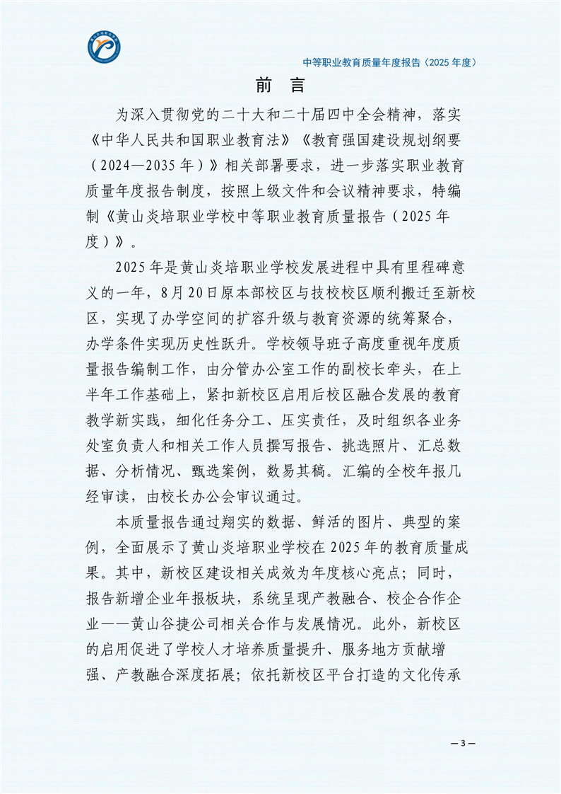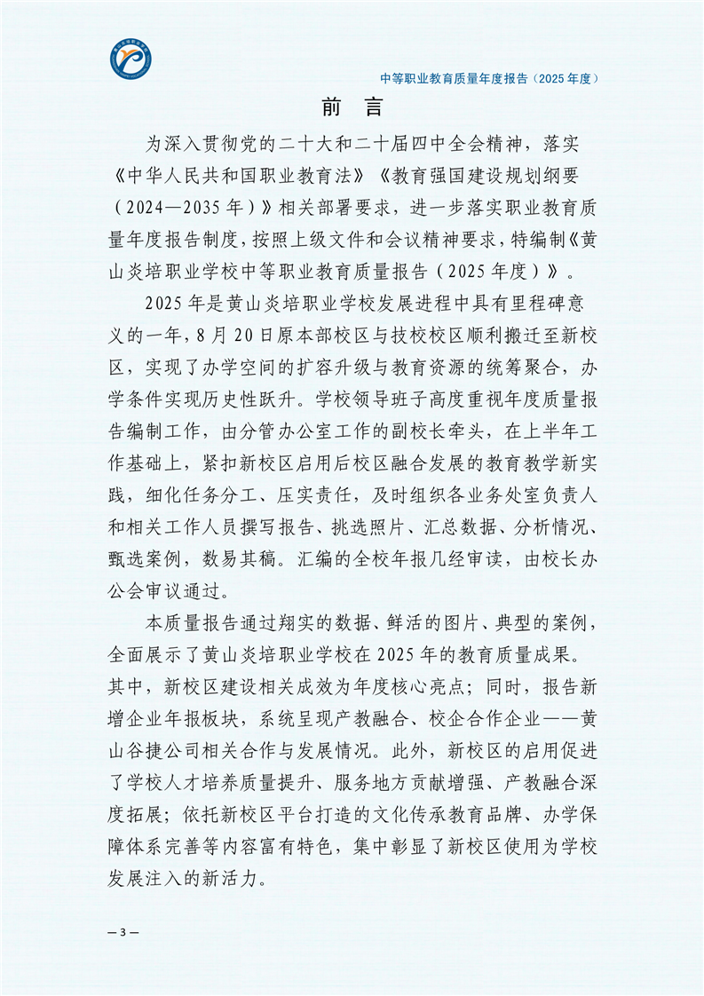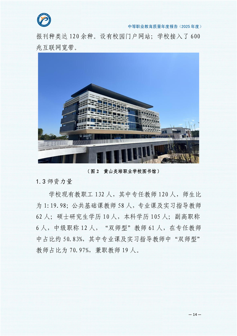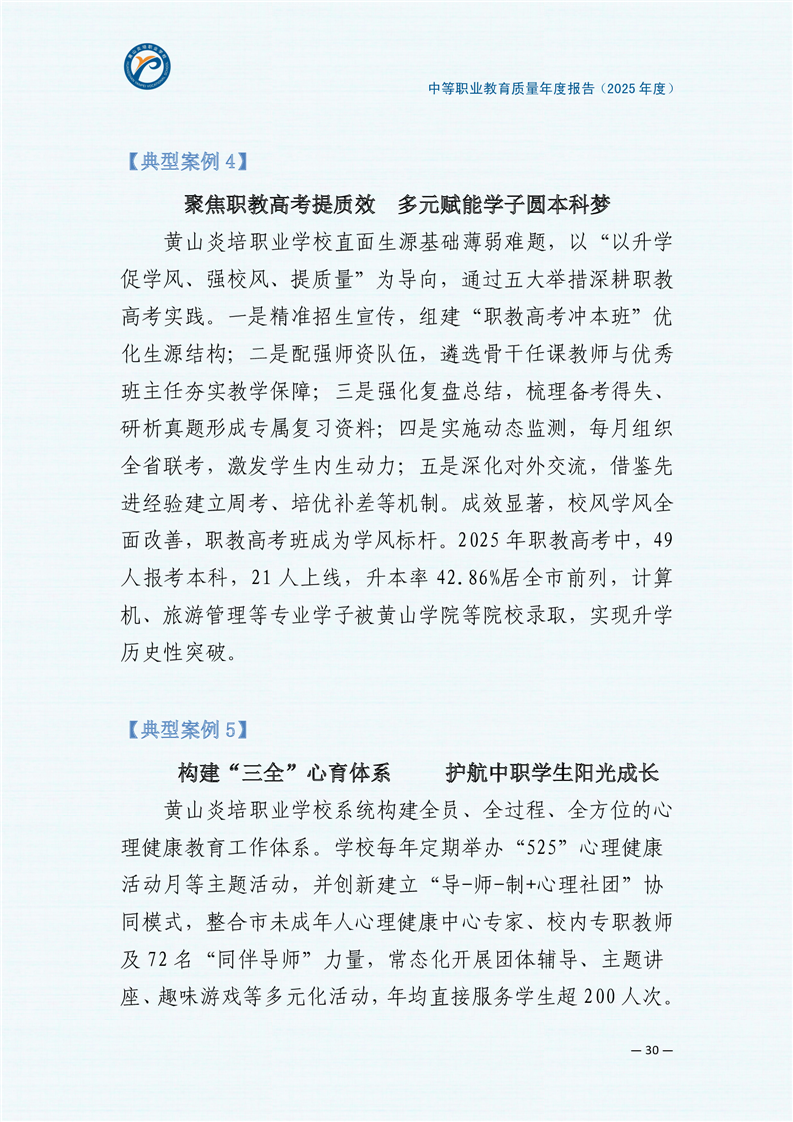 黄山炎培职业学校中等职业教育质量报告(2025年)