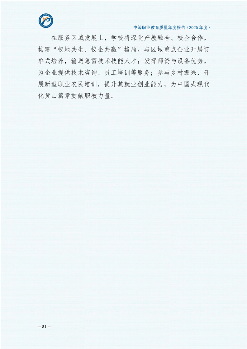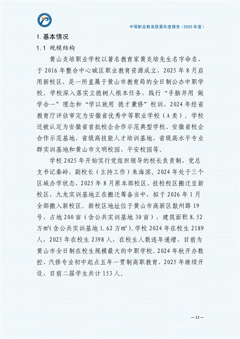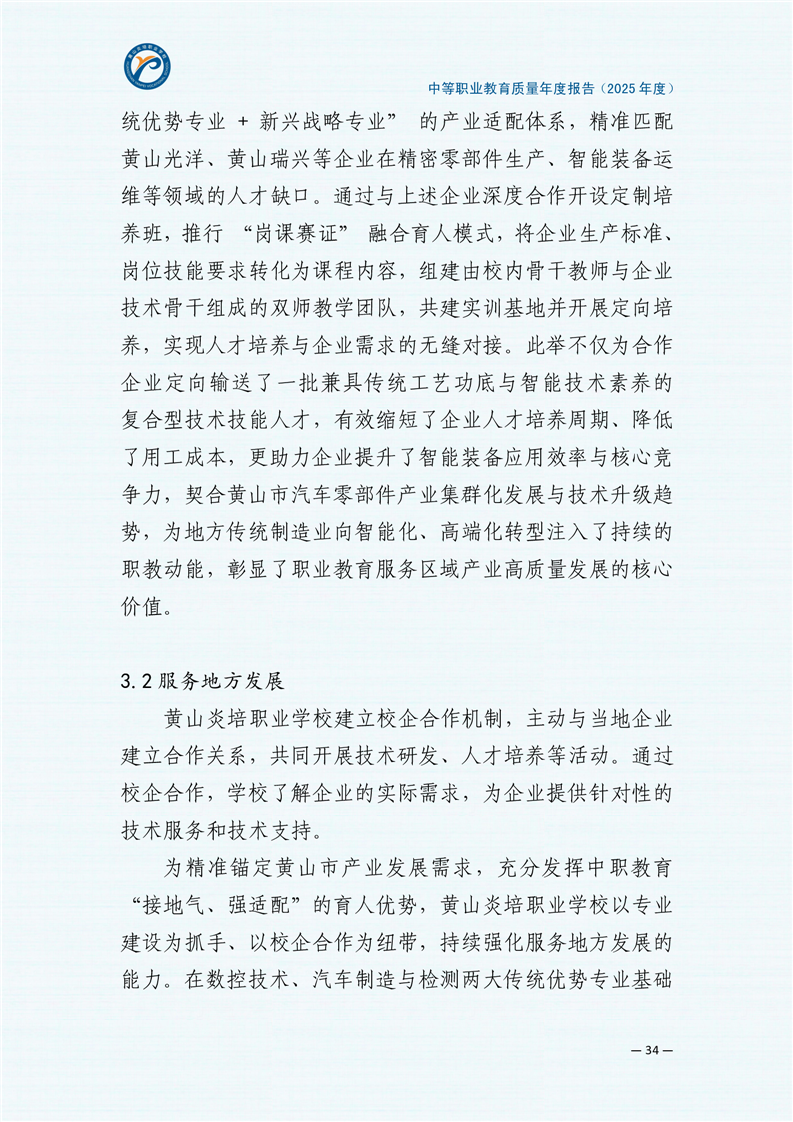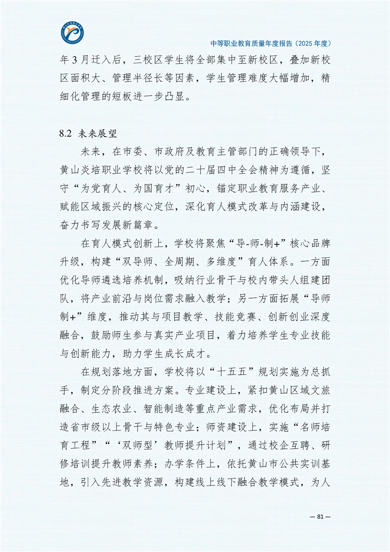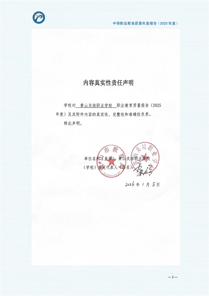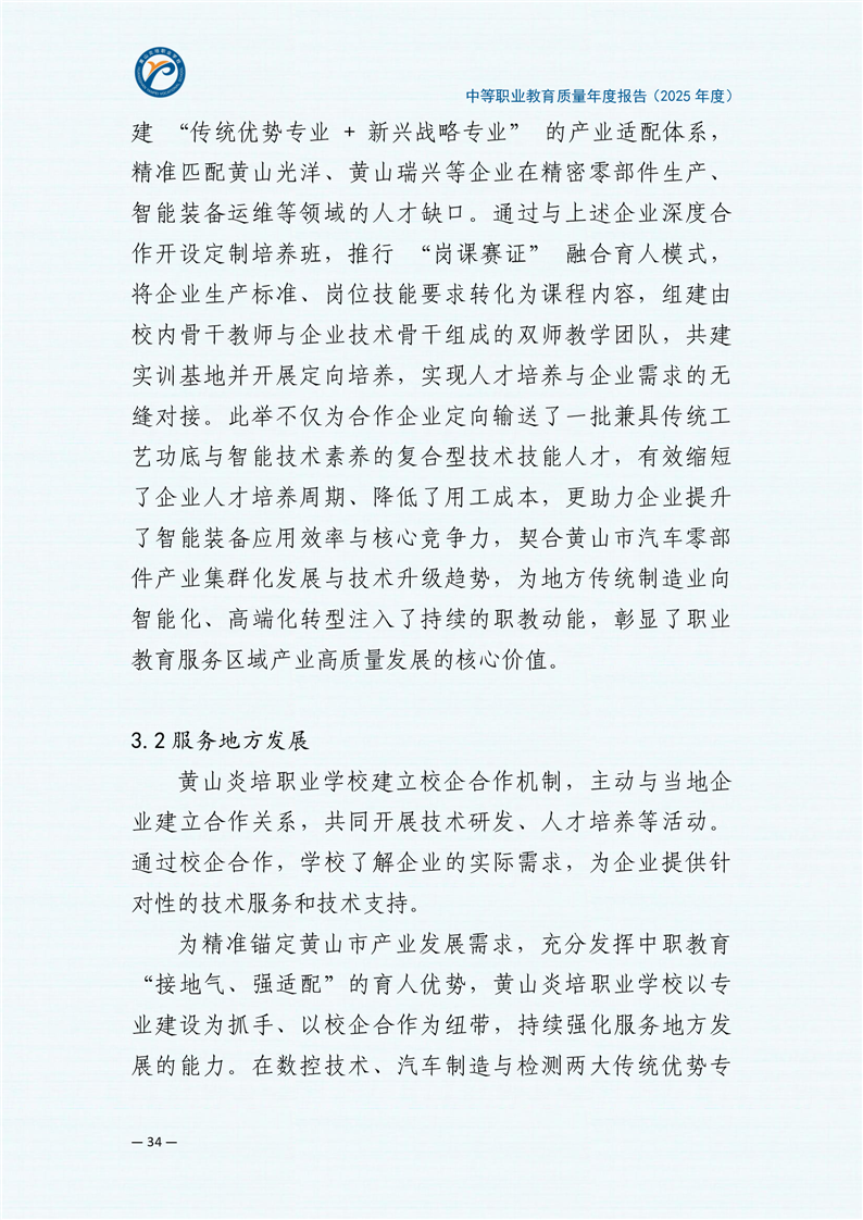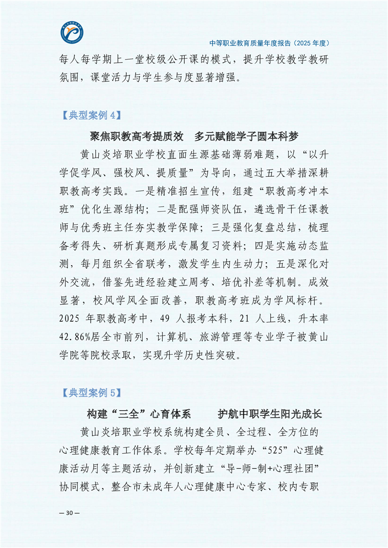 黄山炎培职业学校中等职业教育质量报告(2025年)