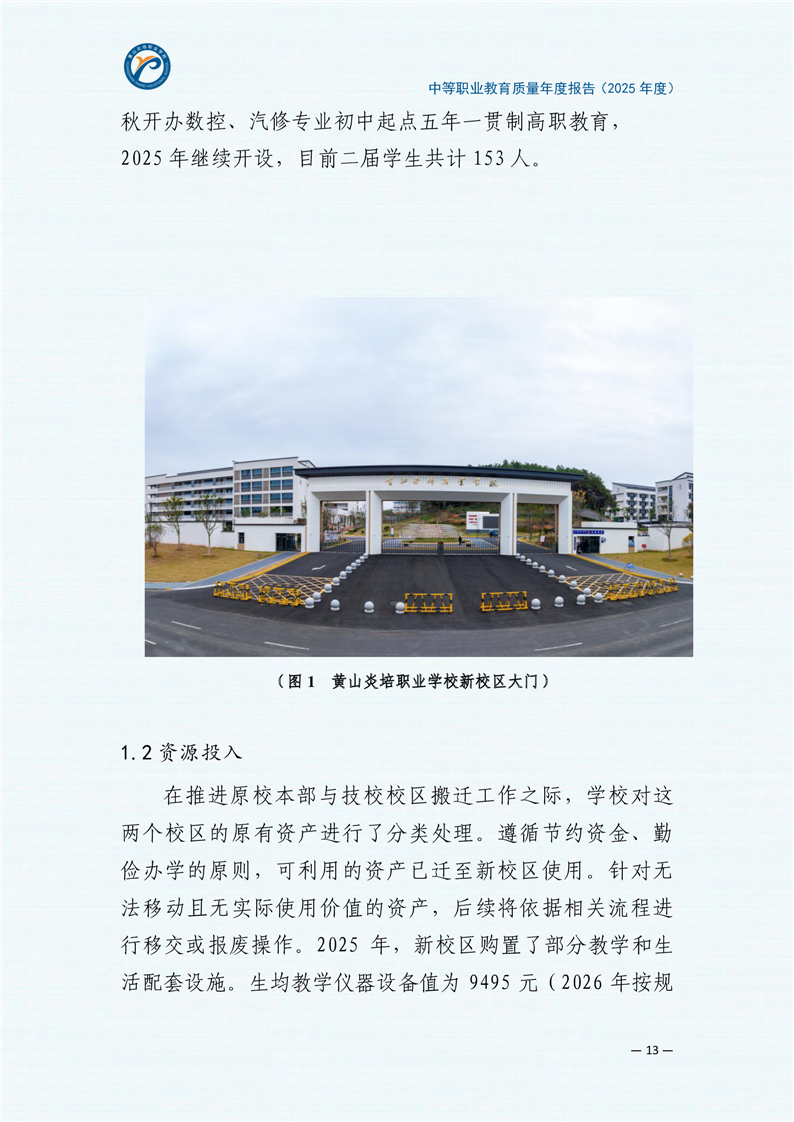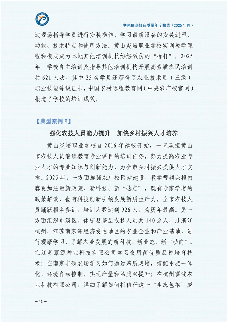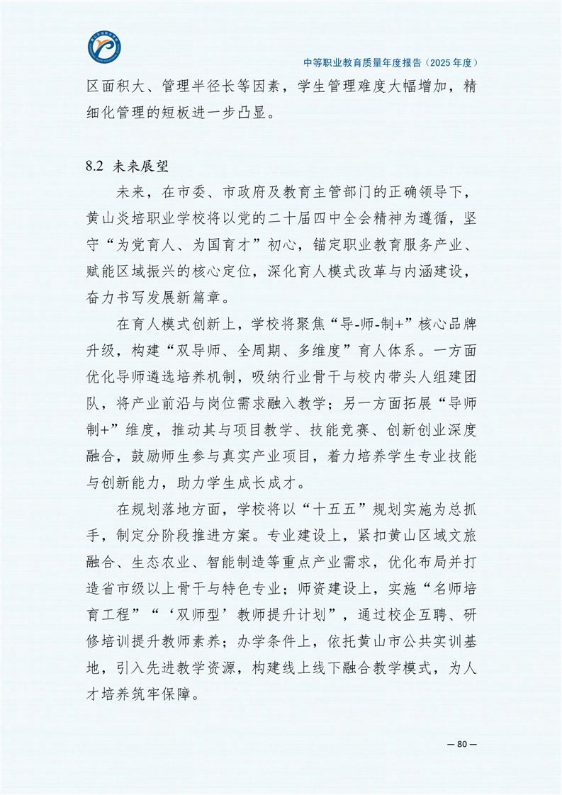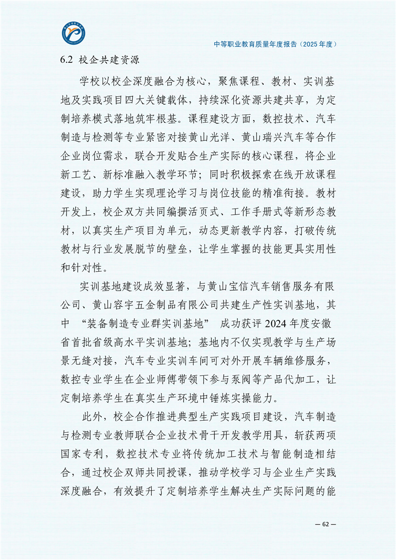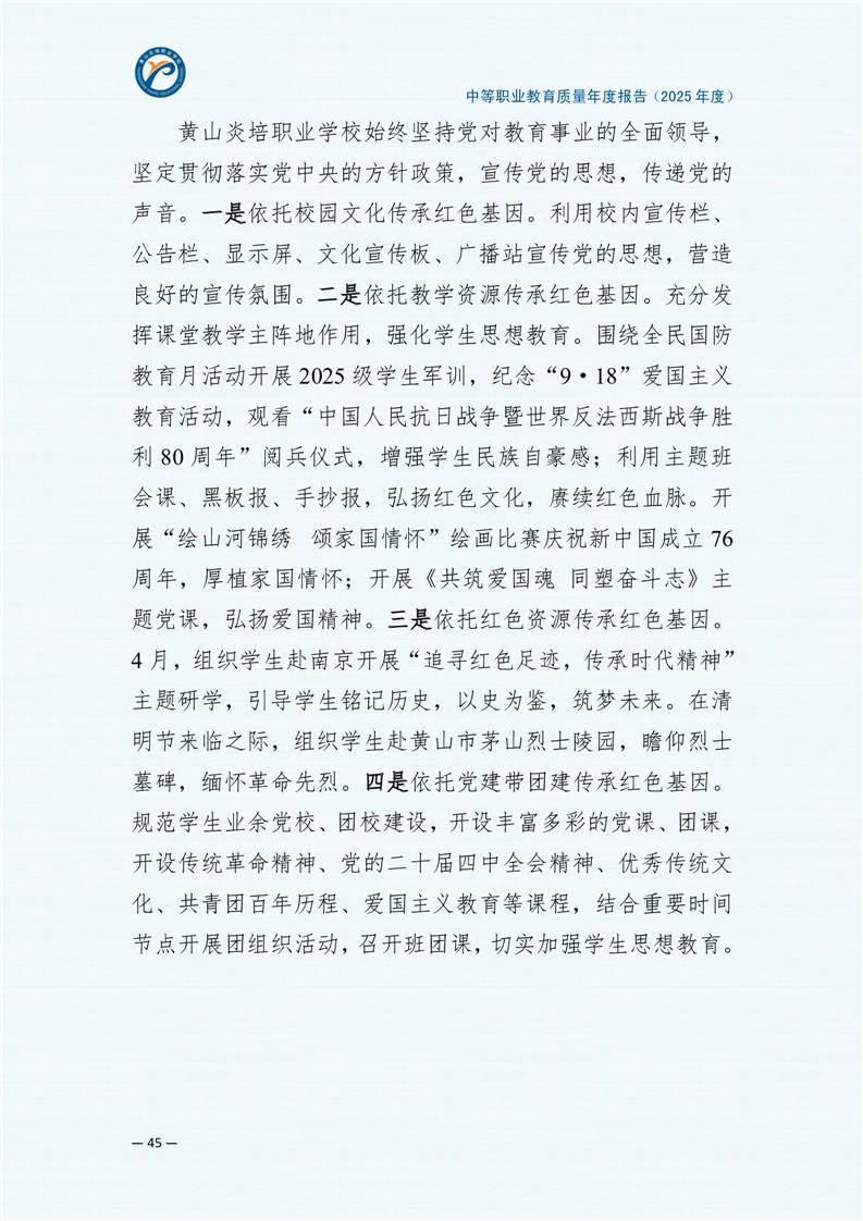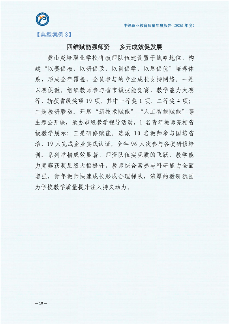 黄山炎培职业学校中等职业教育质量报告(2025年)