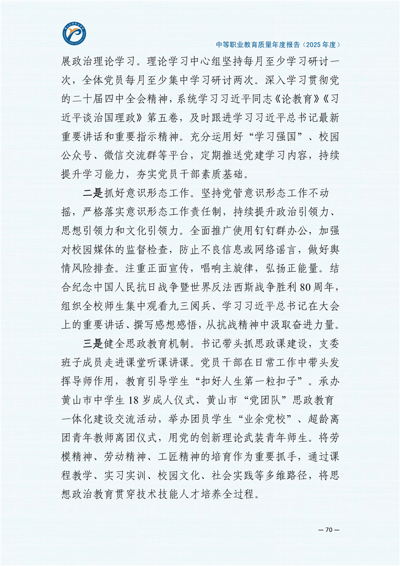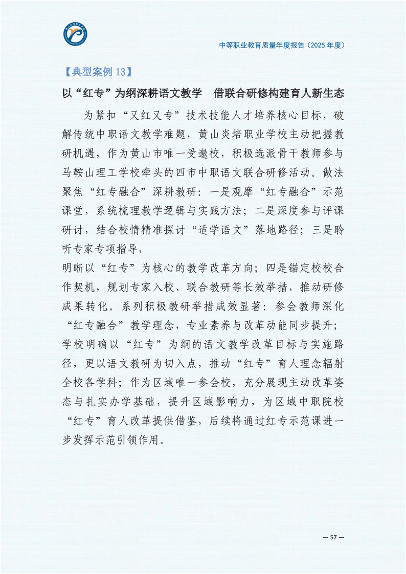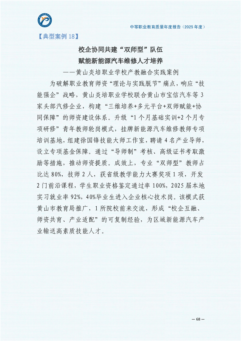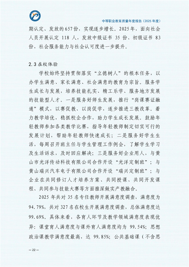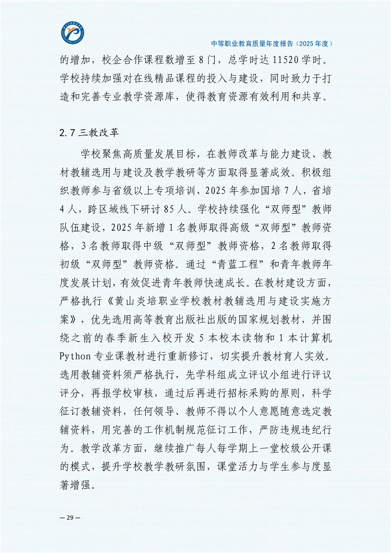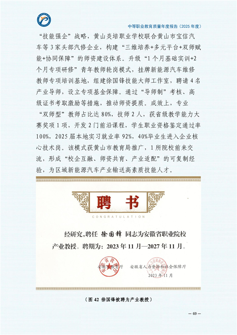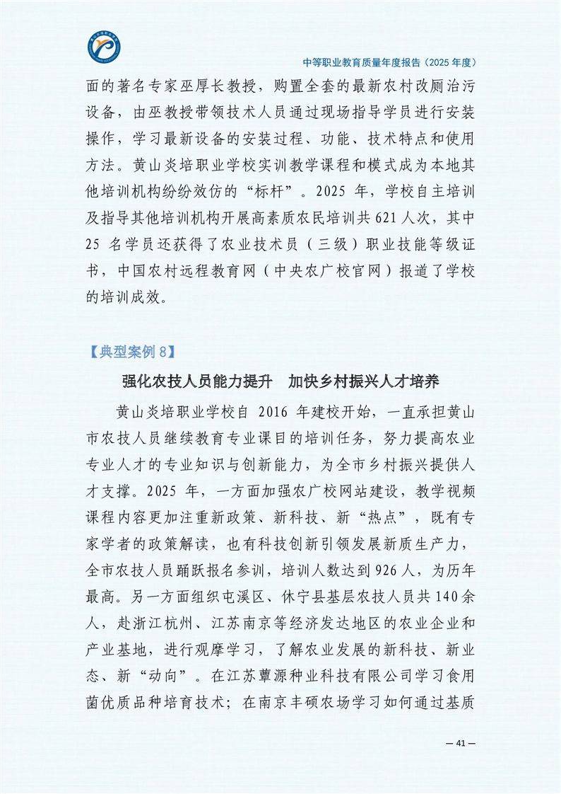 黄山炎培职业学校中等职业教育质量报告(2025年)