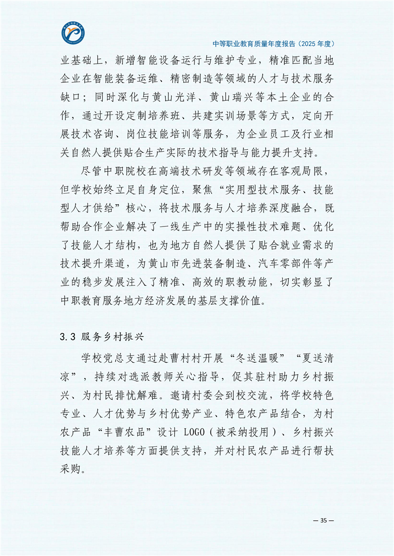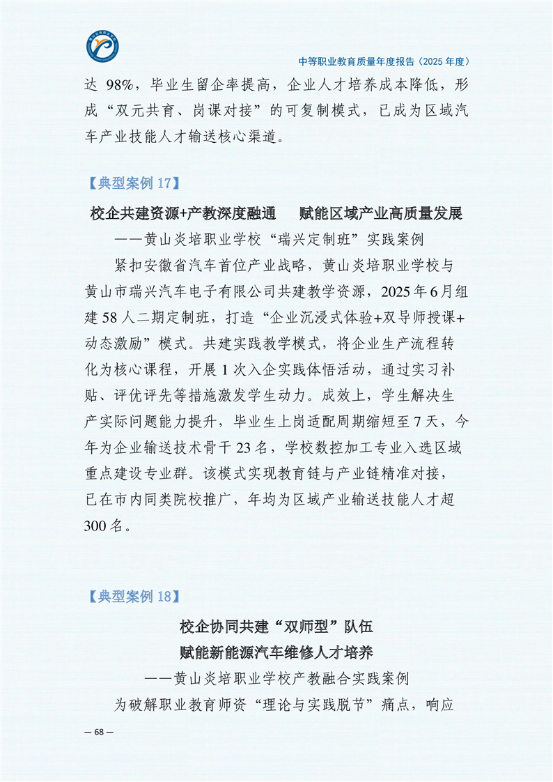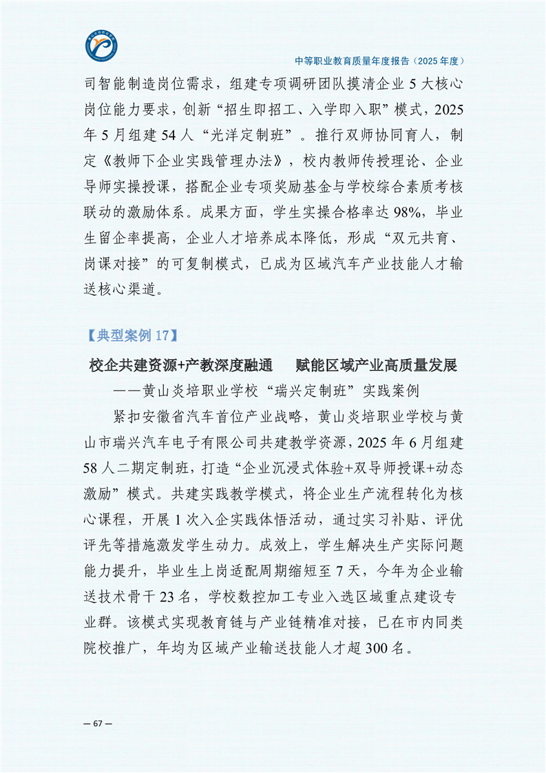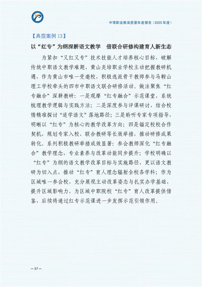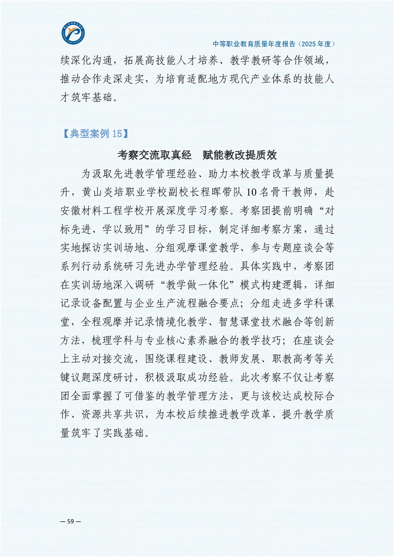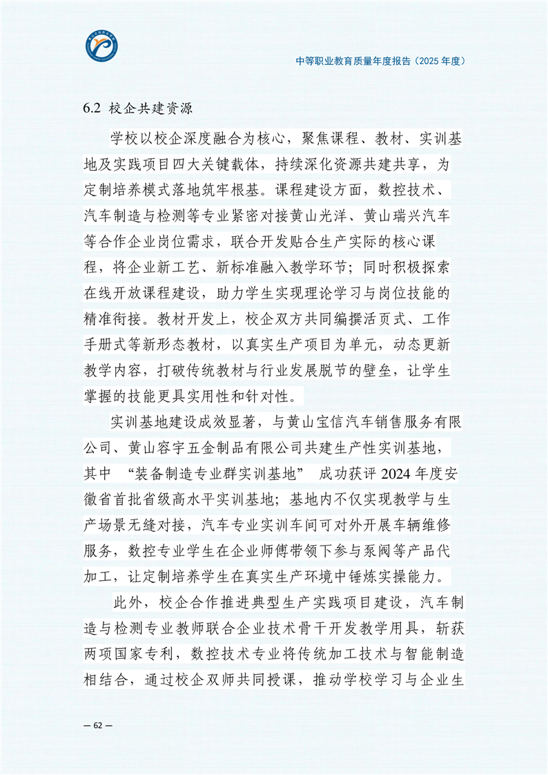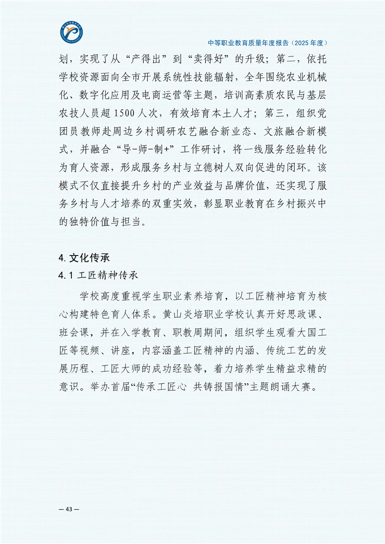 黄山炎培职业学校中等职业教育质量报告(2025年)
