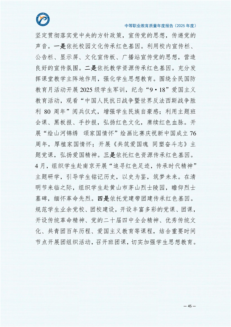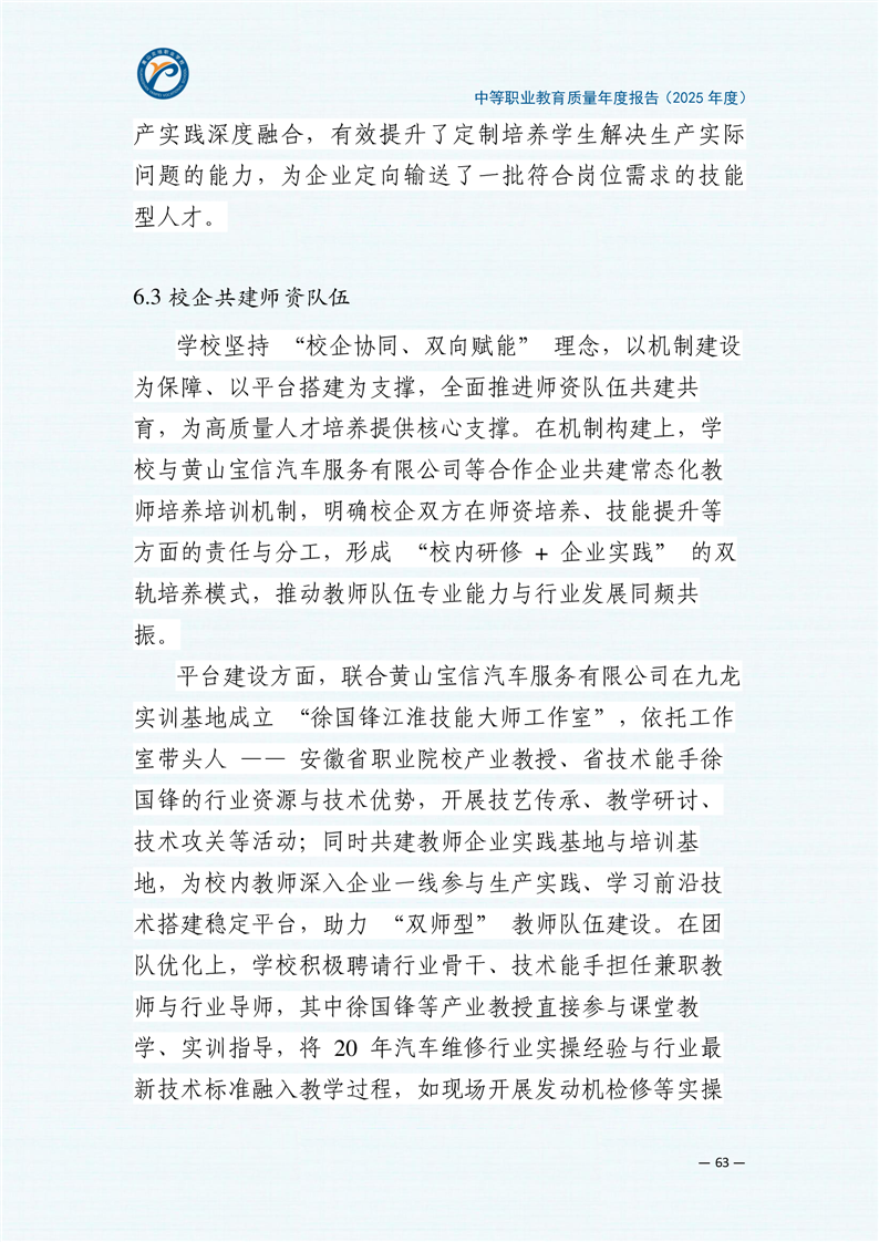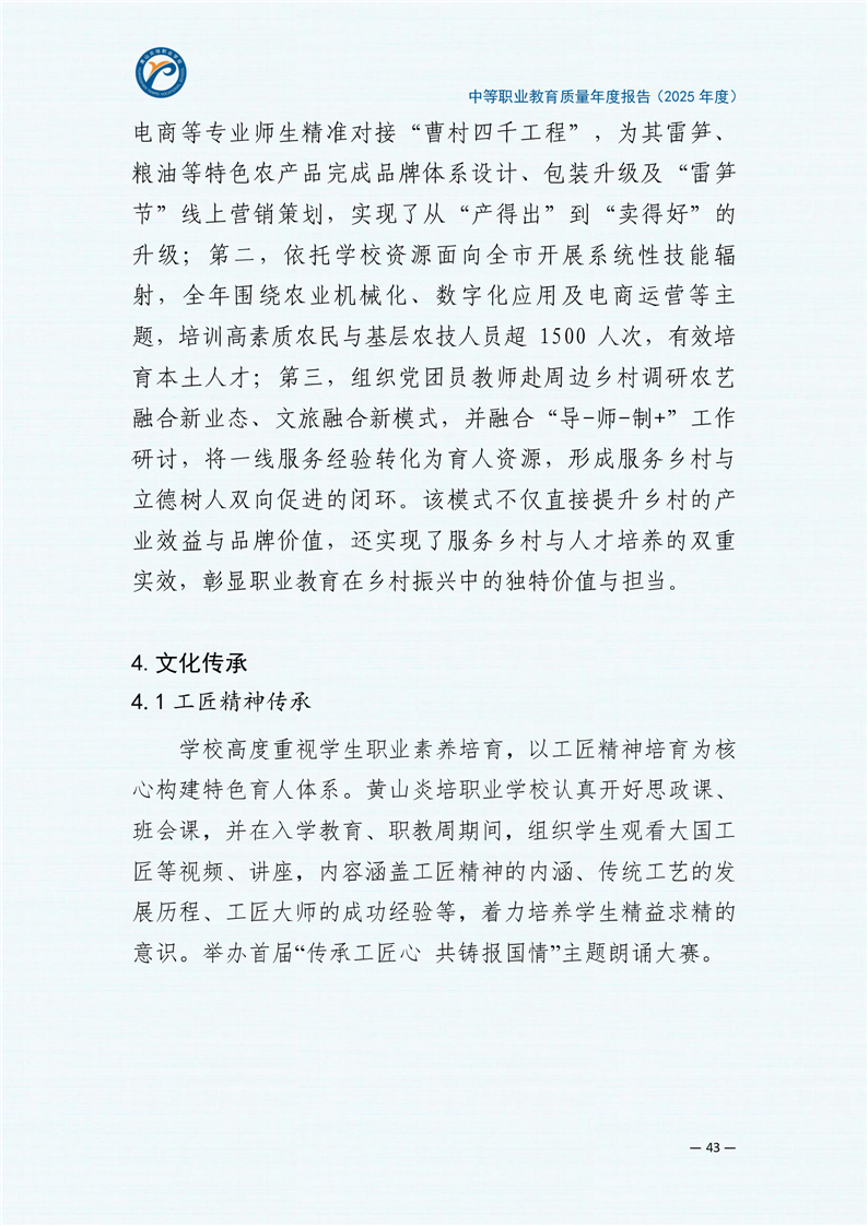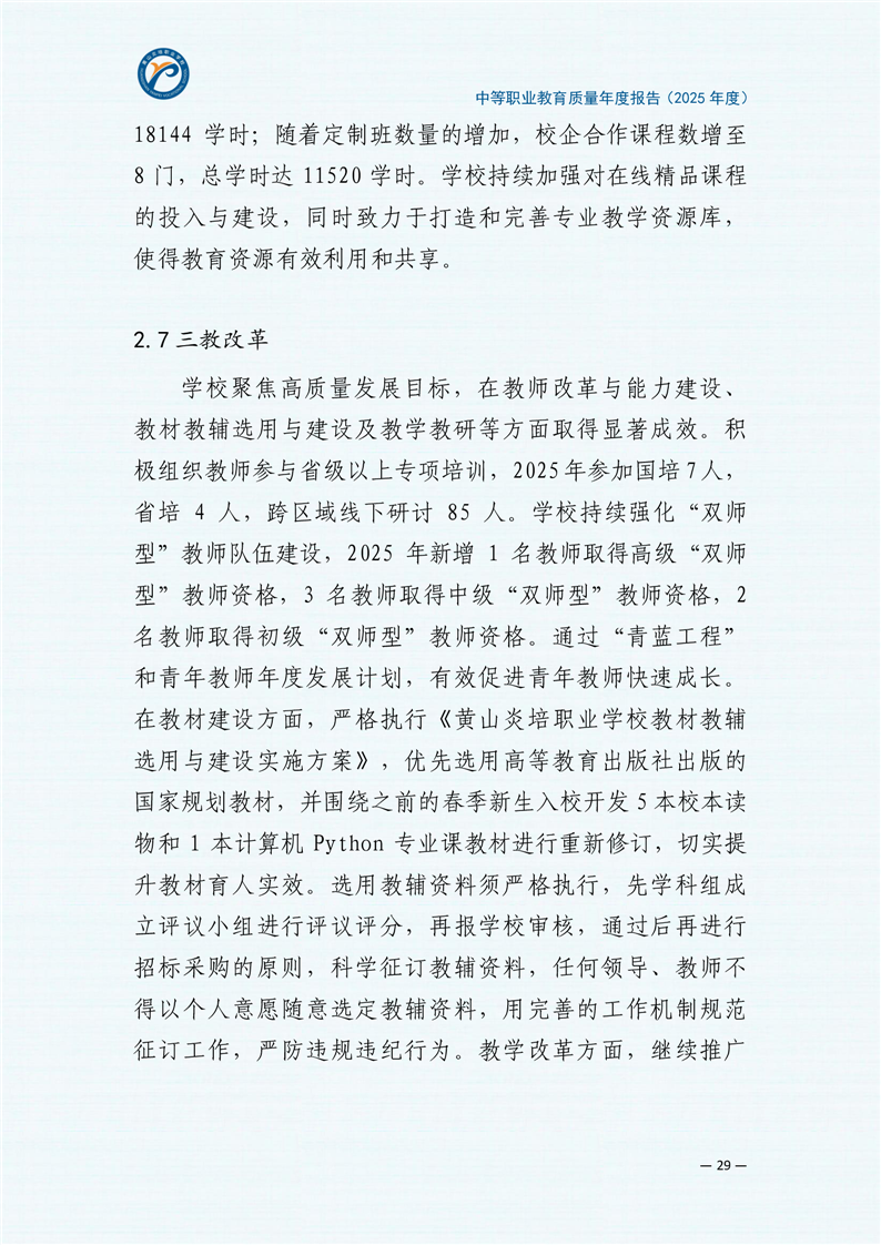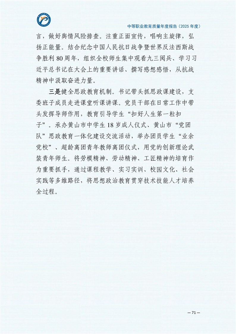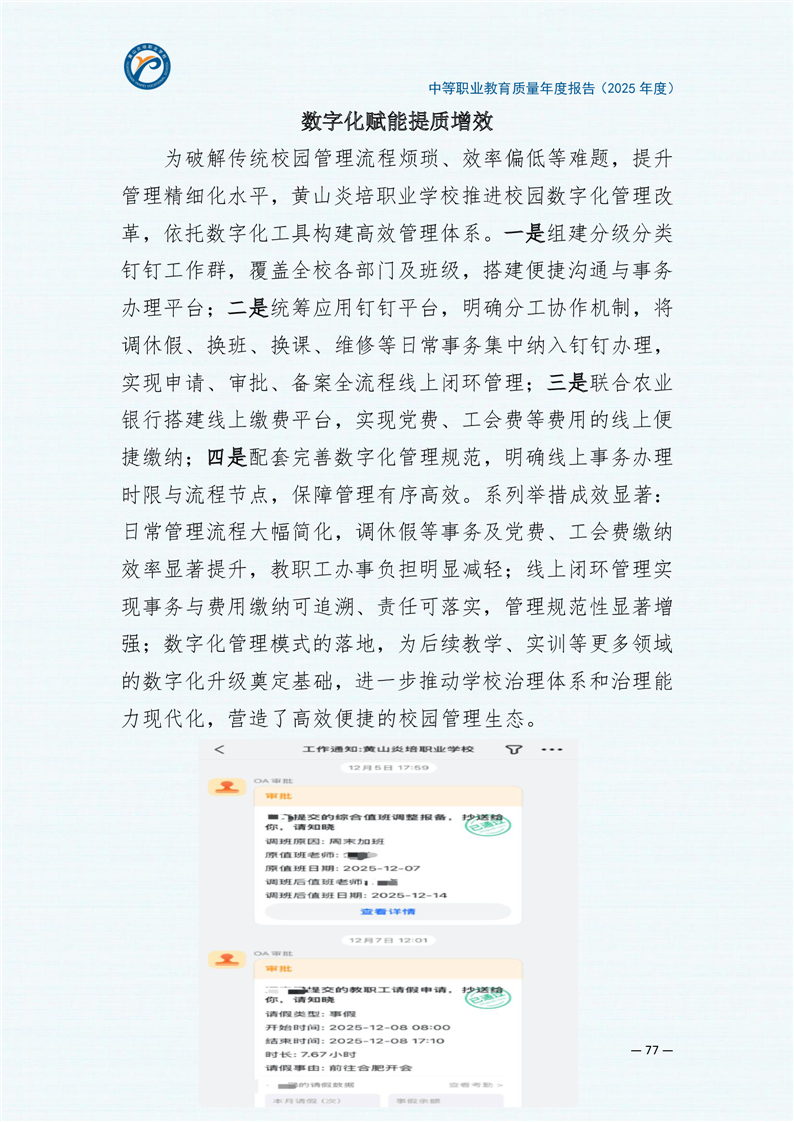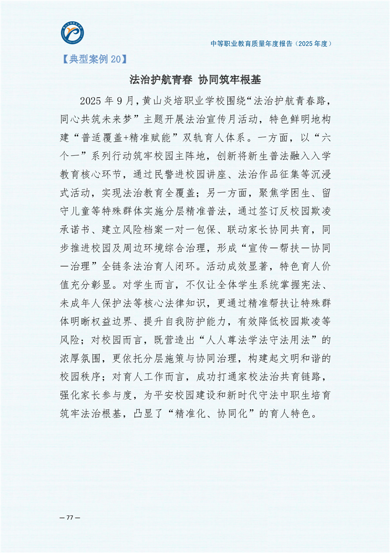 黄山炎培职业学校中等职业教育质量报告(2025年)