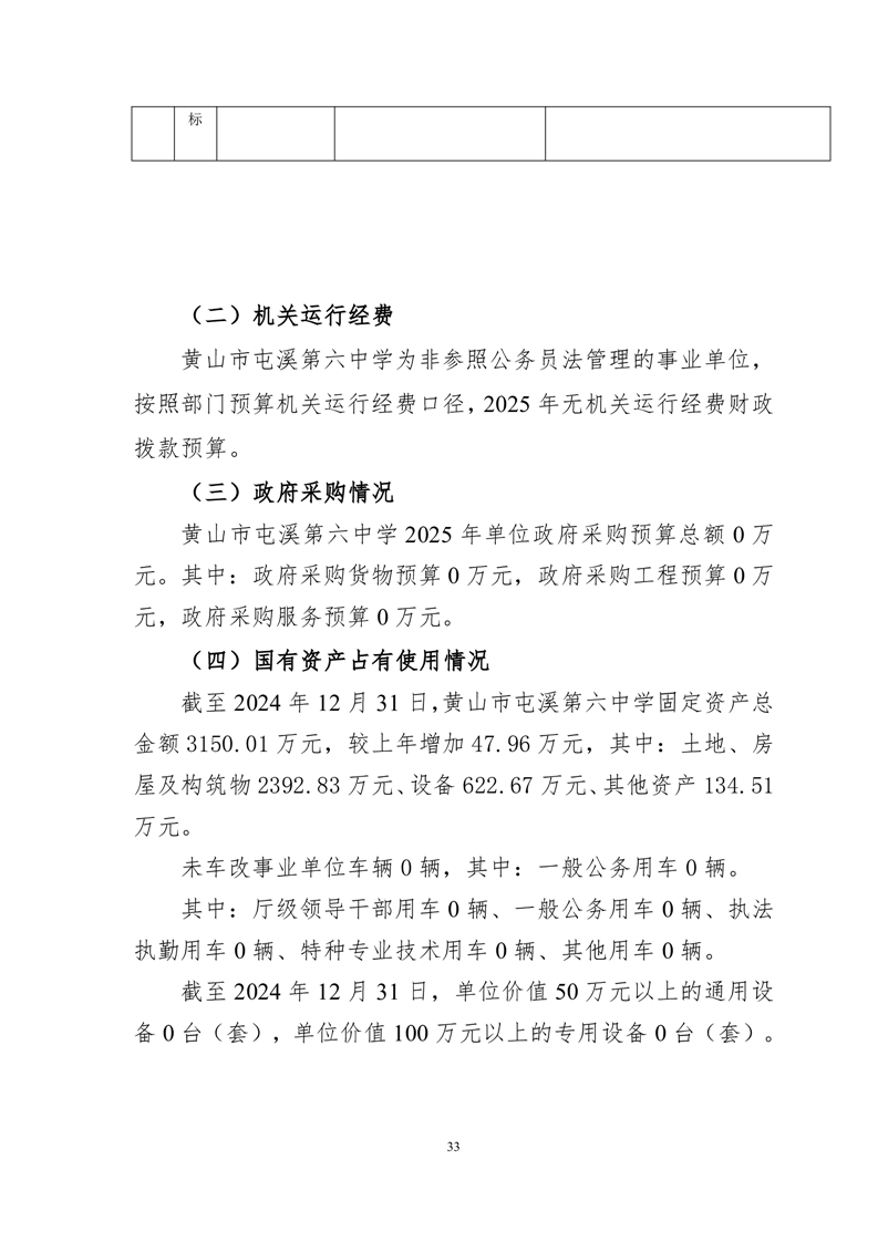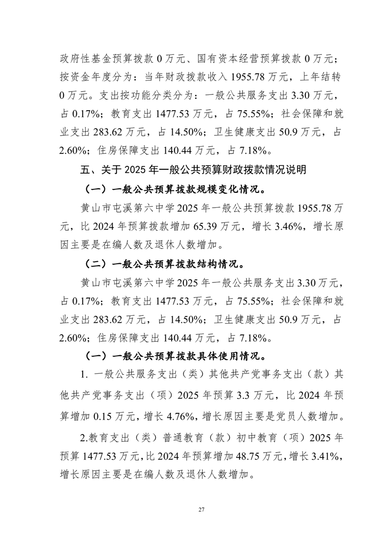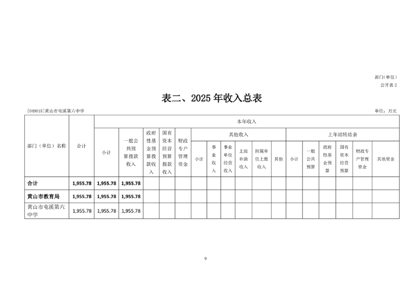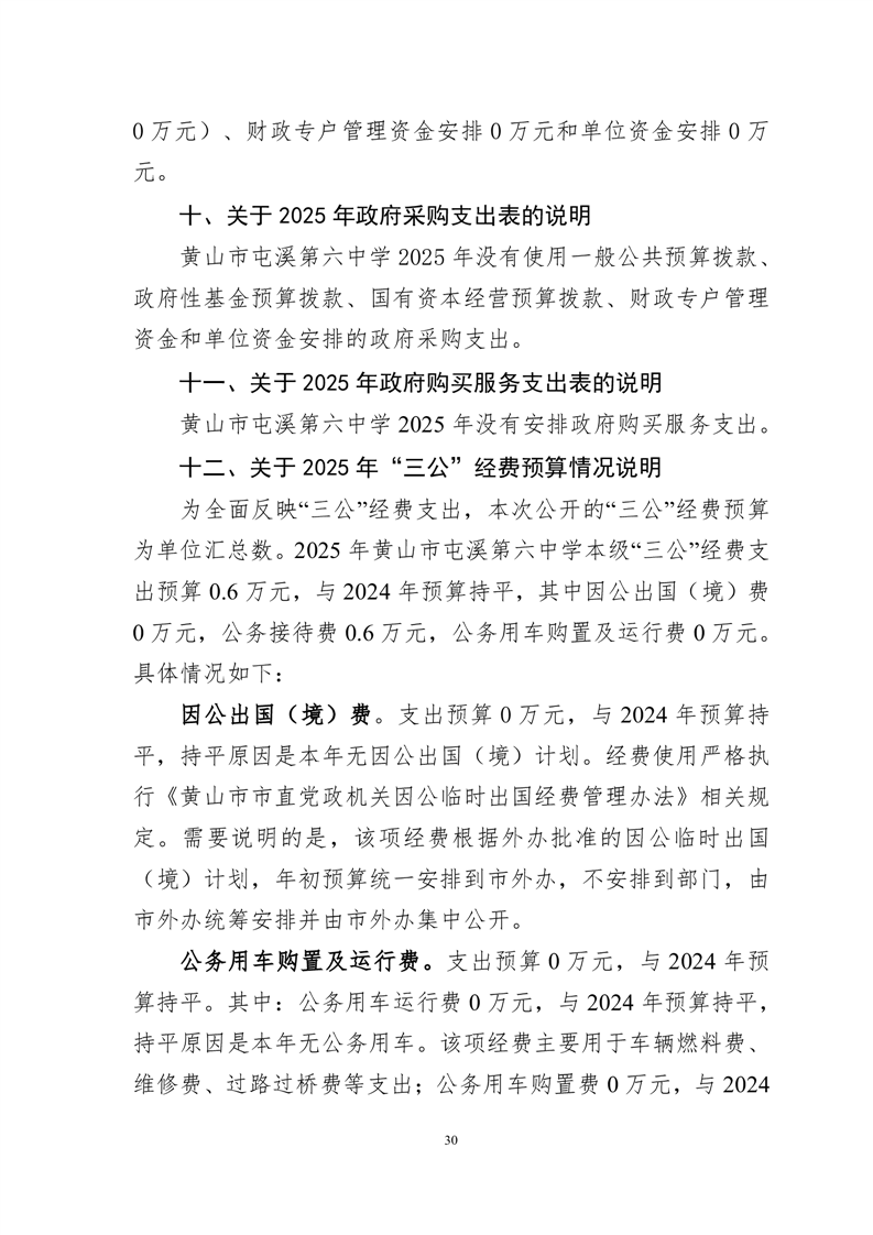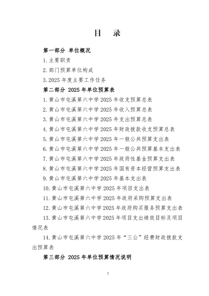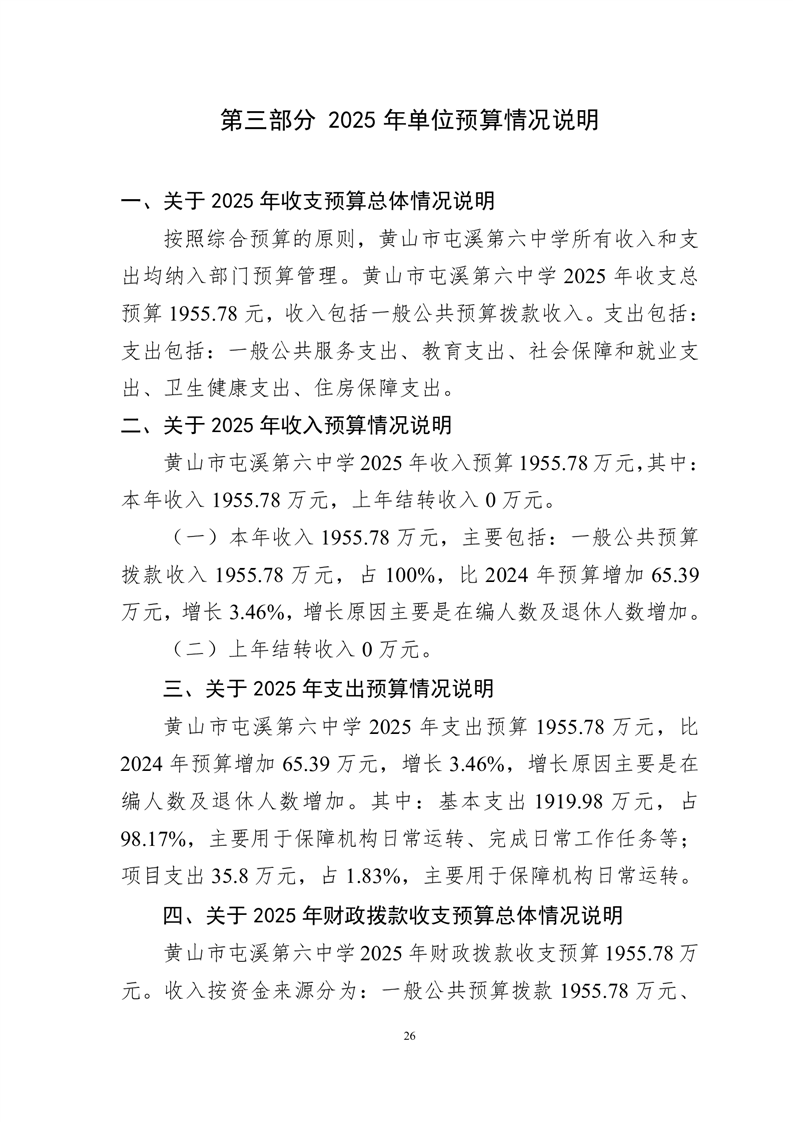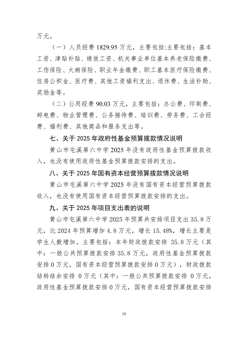 黄山市屯溪第六中学2025年单位预算公开