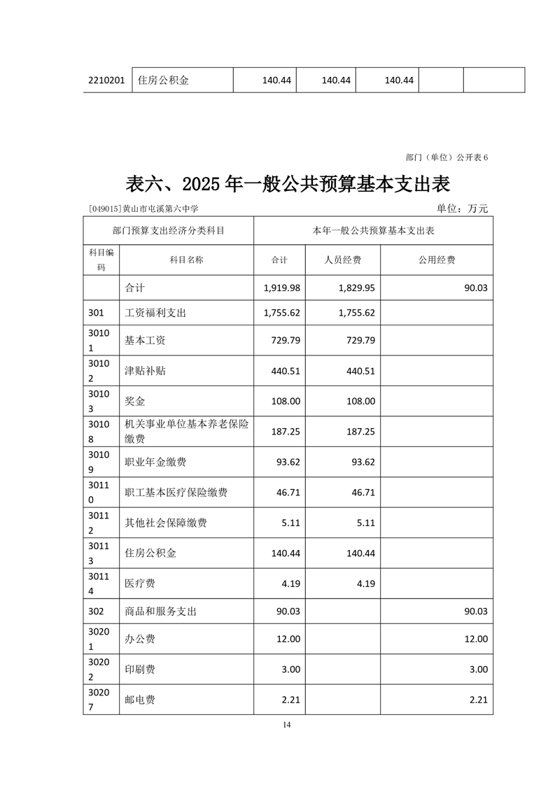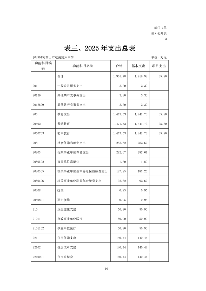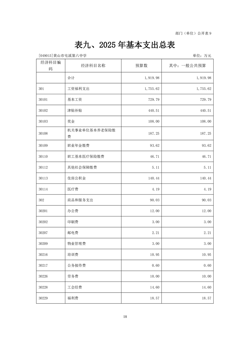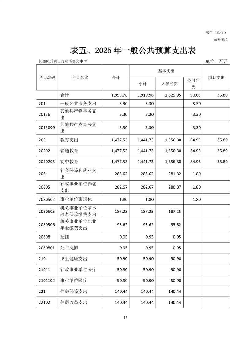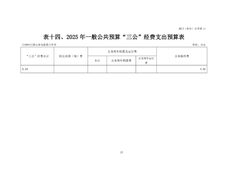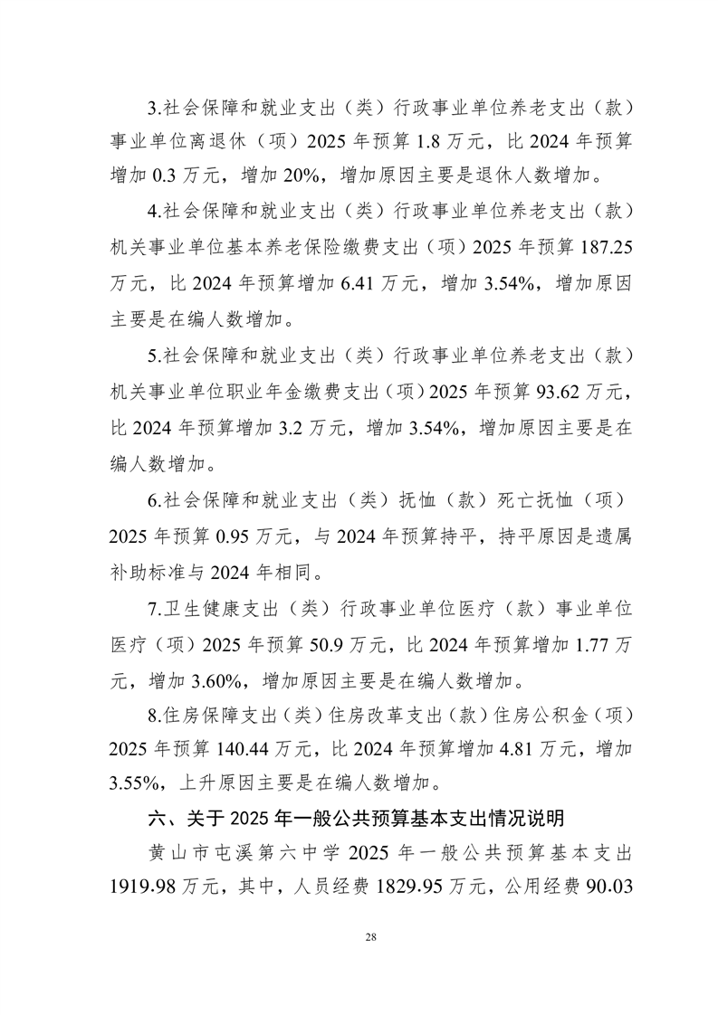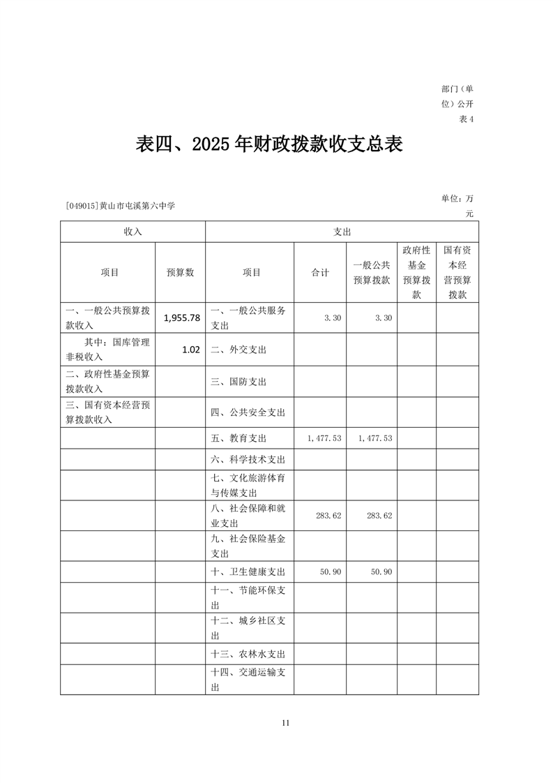 黄山市屯溪第六中学2025年单位预算公开