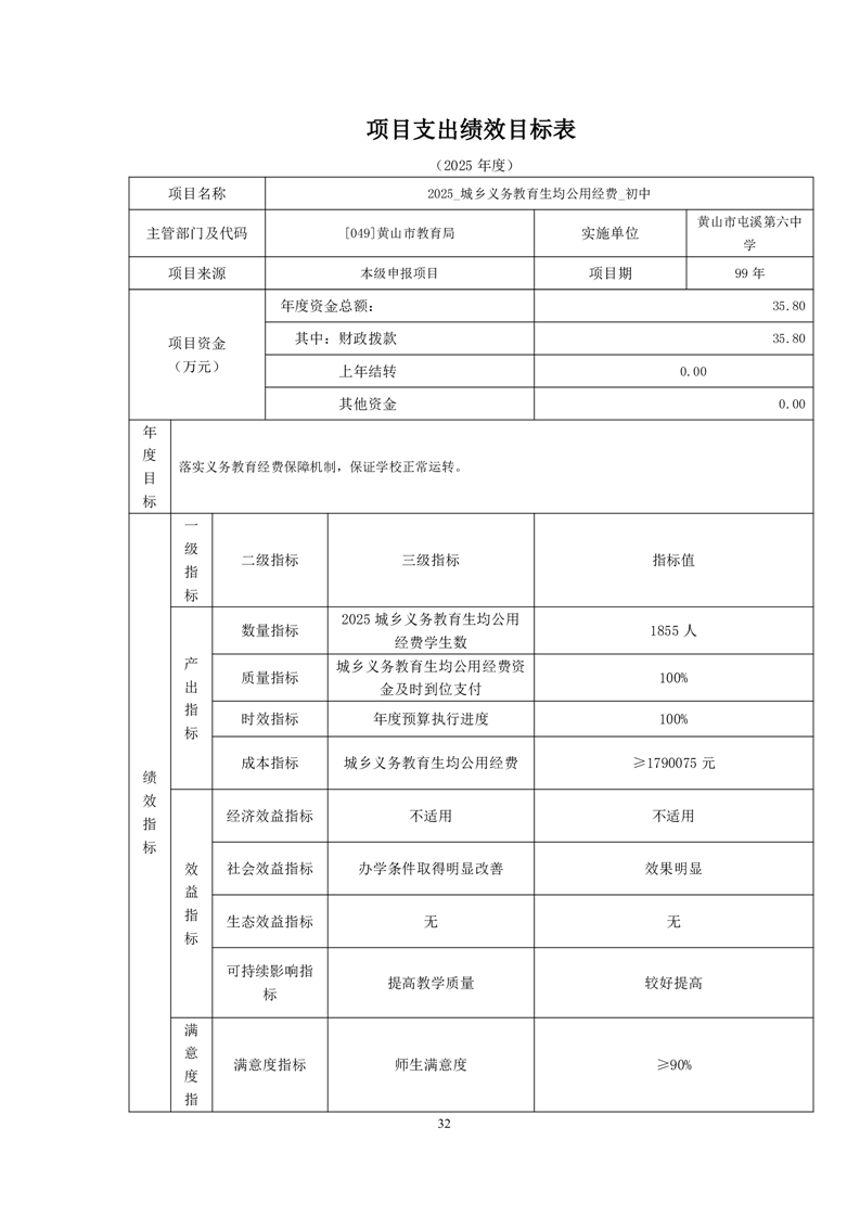 黄山市屯溪第六中学2025年度项目支出绩效目标.zip