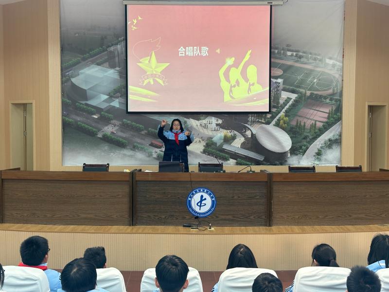 随后,第三项议程的队歌演唱,清脆而响亮的歌声响彻会场。队员们用饱满的热情,唱出了作为少先队员的自豪与骄傲。