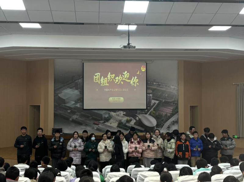仪式在激昂的团歌声中拉开序幕。全体人员起立,齐唱团歌,那激昂的旋律、振奋人心的歌词,唱出了团员们对共青团组织的热爱与向往,也唱出了新时代青年积极向上的精神风貌。