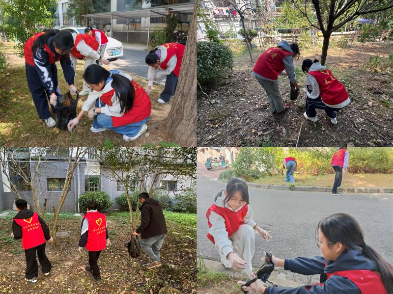 活动中,小青松屯溪六中分队的志愿者与社区导师分工协作、默契配合。大家手持扫帚、夹子、垃圾袋等工具,重点对小区主干道、绿化带、单元楼角落的生活垃圾、枯枝落叶、卫生死角进行集中清理。学生志愿者们热情高涨,不怕脏累,仔细清扫每一处杂物;社区工作人员则结合小区情况,指导志愿者高效清理,现场一派忙碌有序的景象。