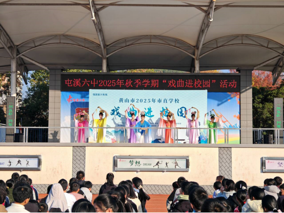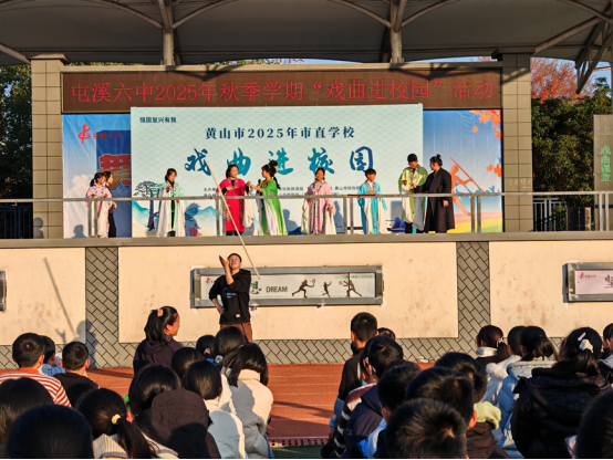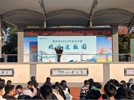 为深入贯彻“导-师-制+”五育融合育人方针,弘扬中华优秀传统文化,提升学生艺术素养与文化认同,2025年12月1日下午,黄山市戏曲进校园活动在屯溪六中再度精彩启幕。本次活动创新形式,将专业展演与沉浸体验深度融合,为全体师生呈现了一场导学相长、韵味悠长的戏曲文化盛宴。
