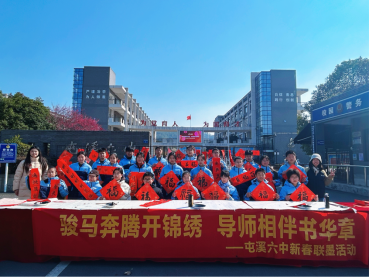 为传承中华优秀传统文化,丰富校园文化生活,在墨香雅韵中迎接新春佳节,2026年2月8日上午,屯溪六中团委联合美术教研组精心举办“骏马奔腾开锦绣,导师相伴书华章”新春联墨活动。活动以笔墨为媒,将传统年俗文化与“导-师-制+”育人理念深度融合,让同学们在“导学相伴、同伴互助”的氛围中,于笔走龙蛇间感受文化魅力,在翰墨飘香中传递新春祝福。