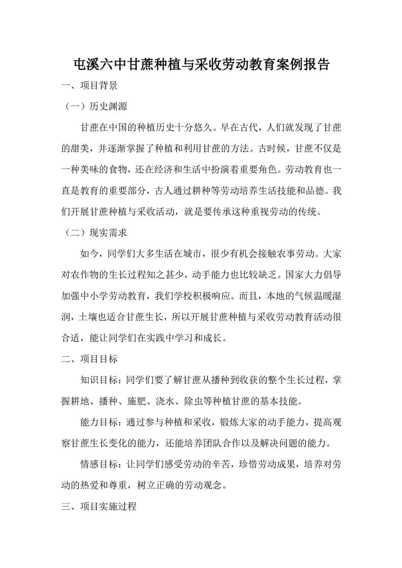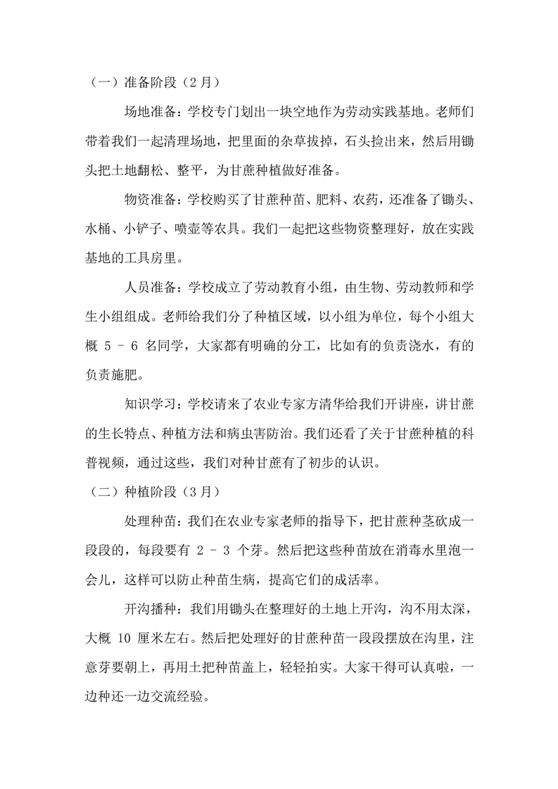 屯溪六中甘蔗种植与采收劳动教育案例报告
