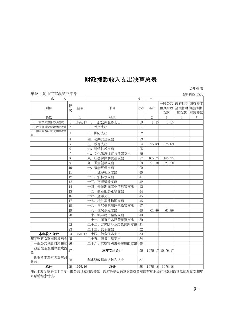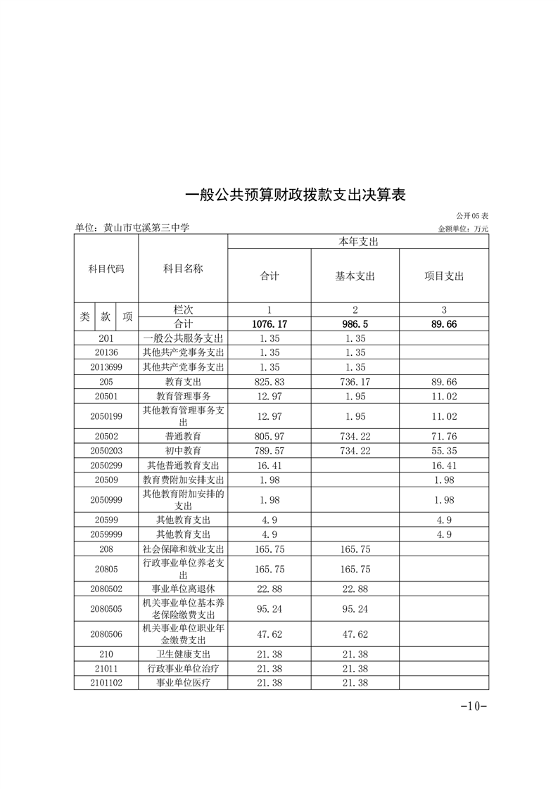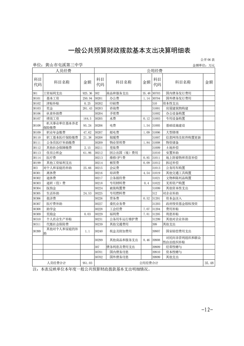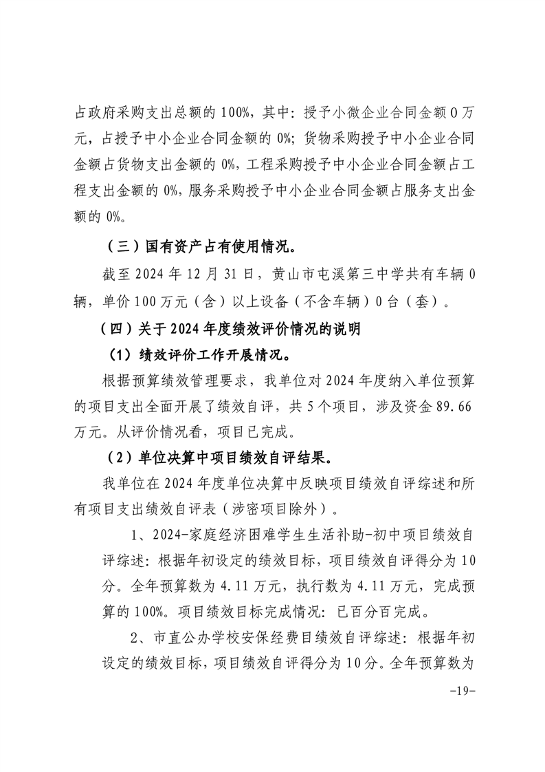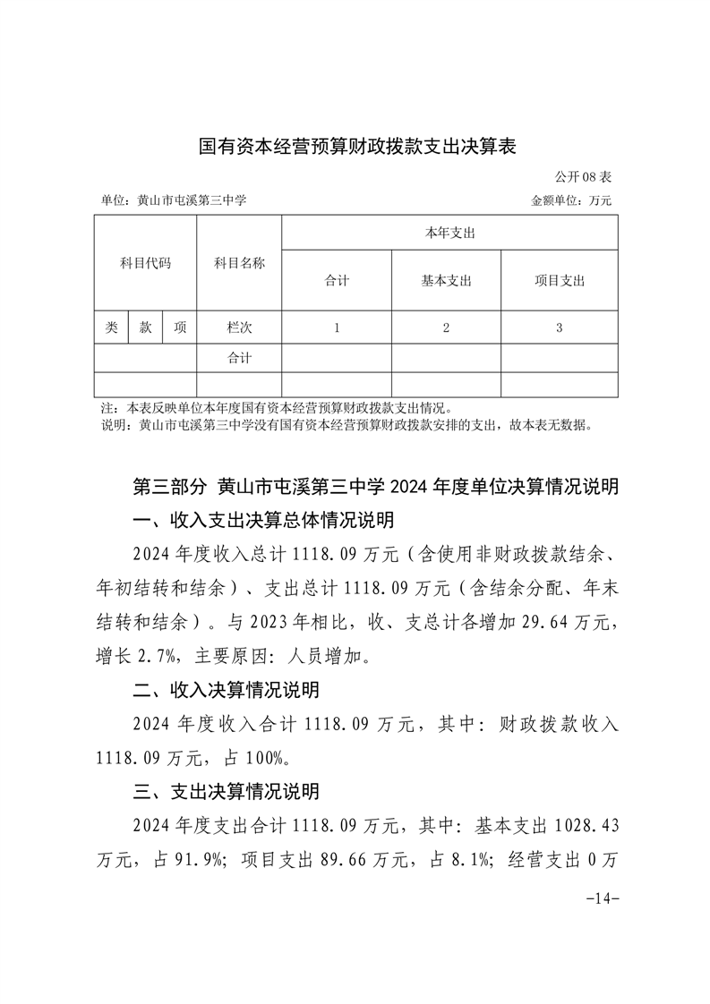 黄山市屯溪第三中学2024年单位决算公开