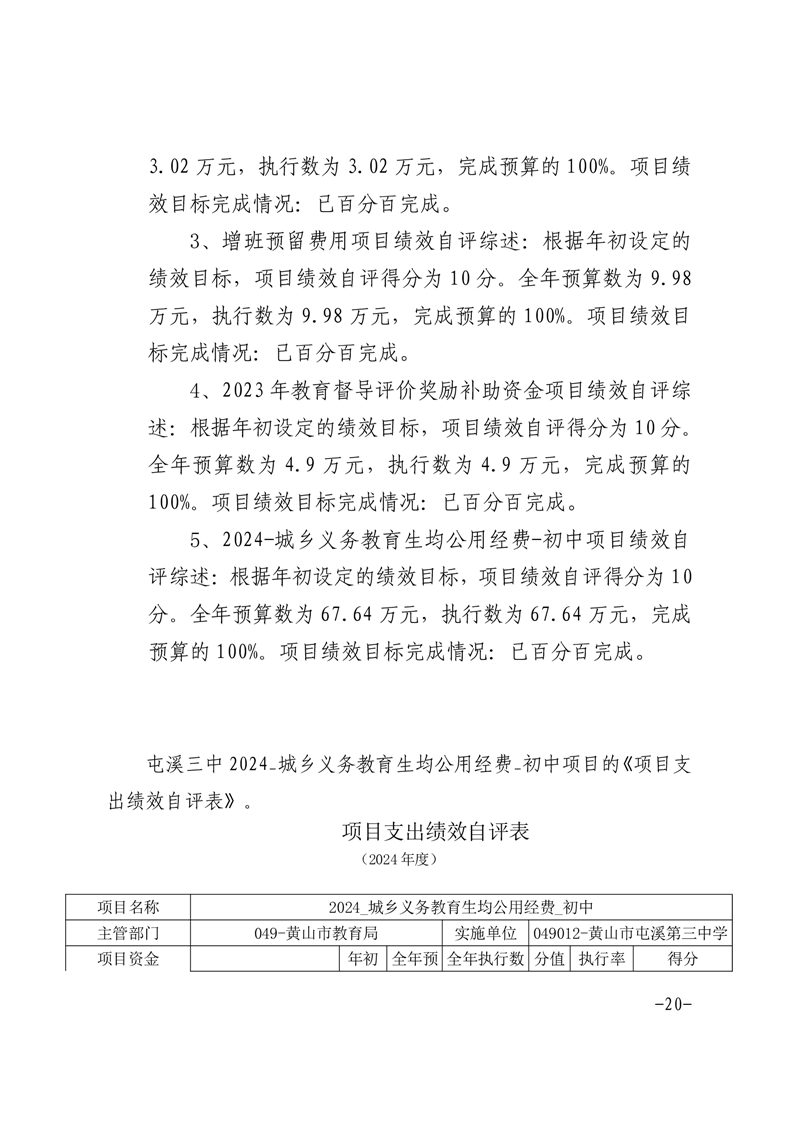 2024屯溪三中项目绩效清单.docx