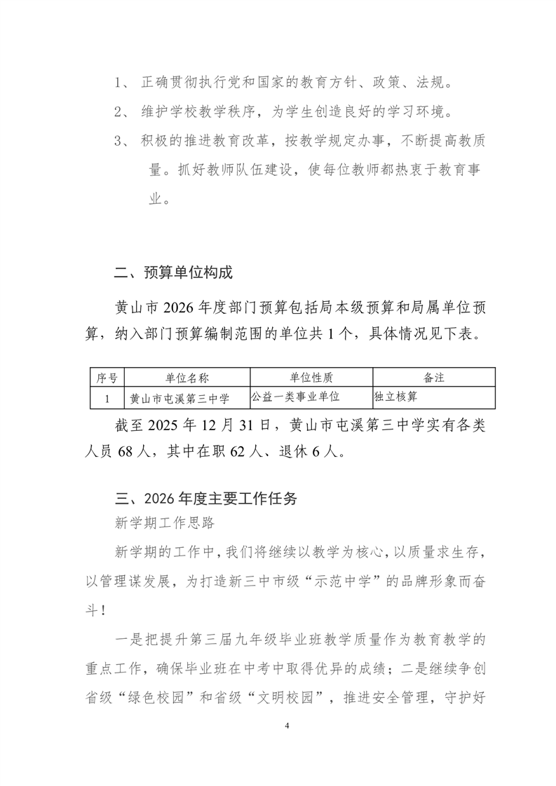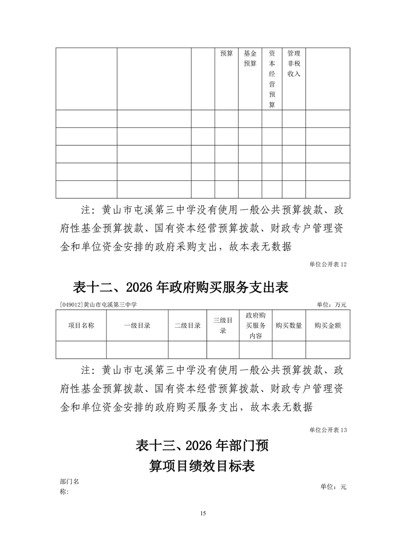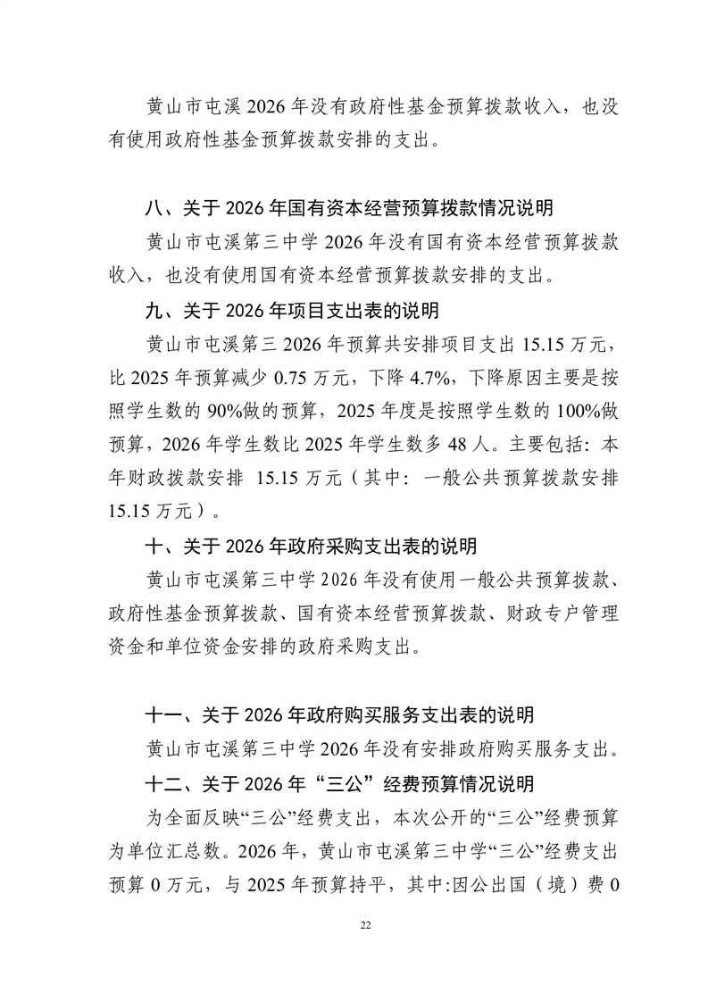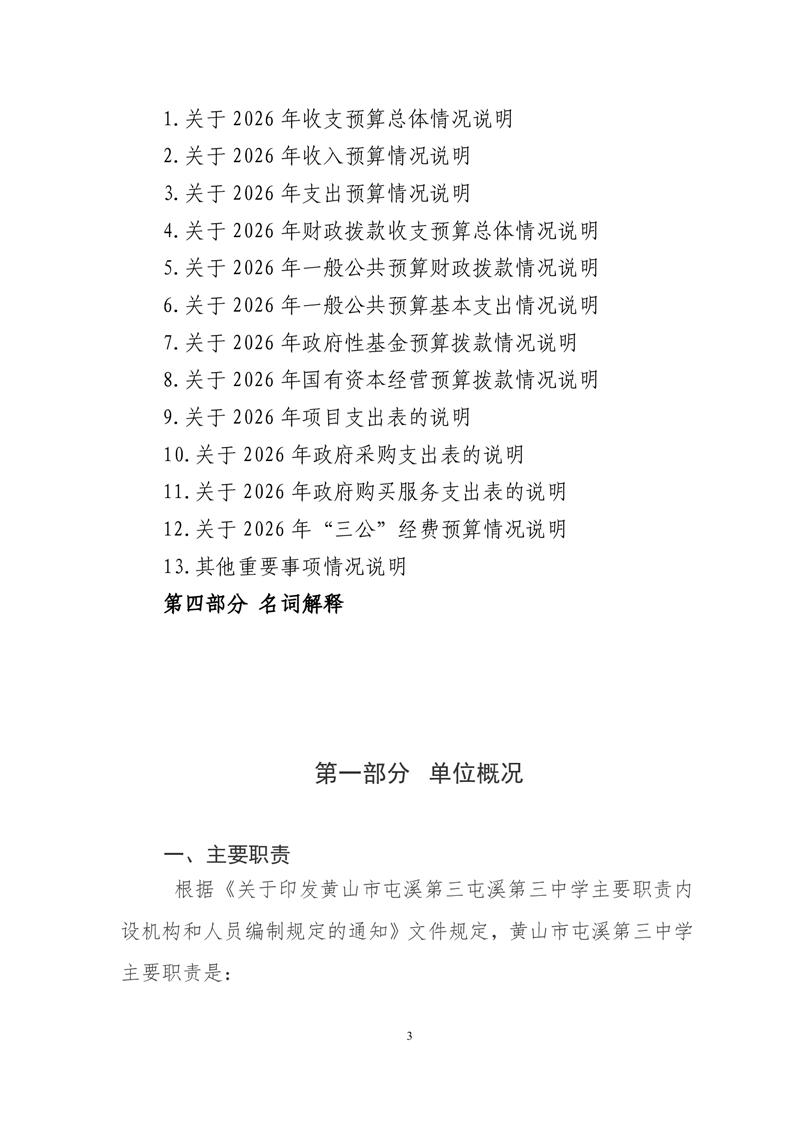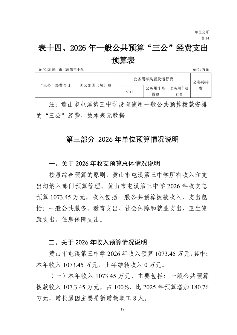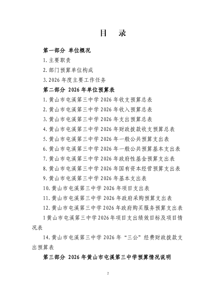 黄山市屯溪第三中学2026年单位预算