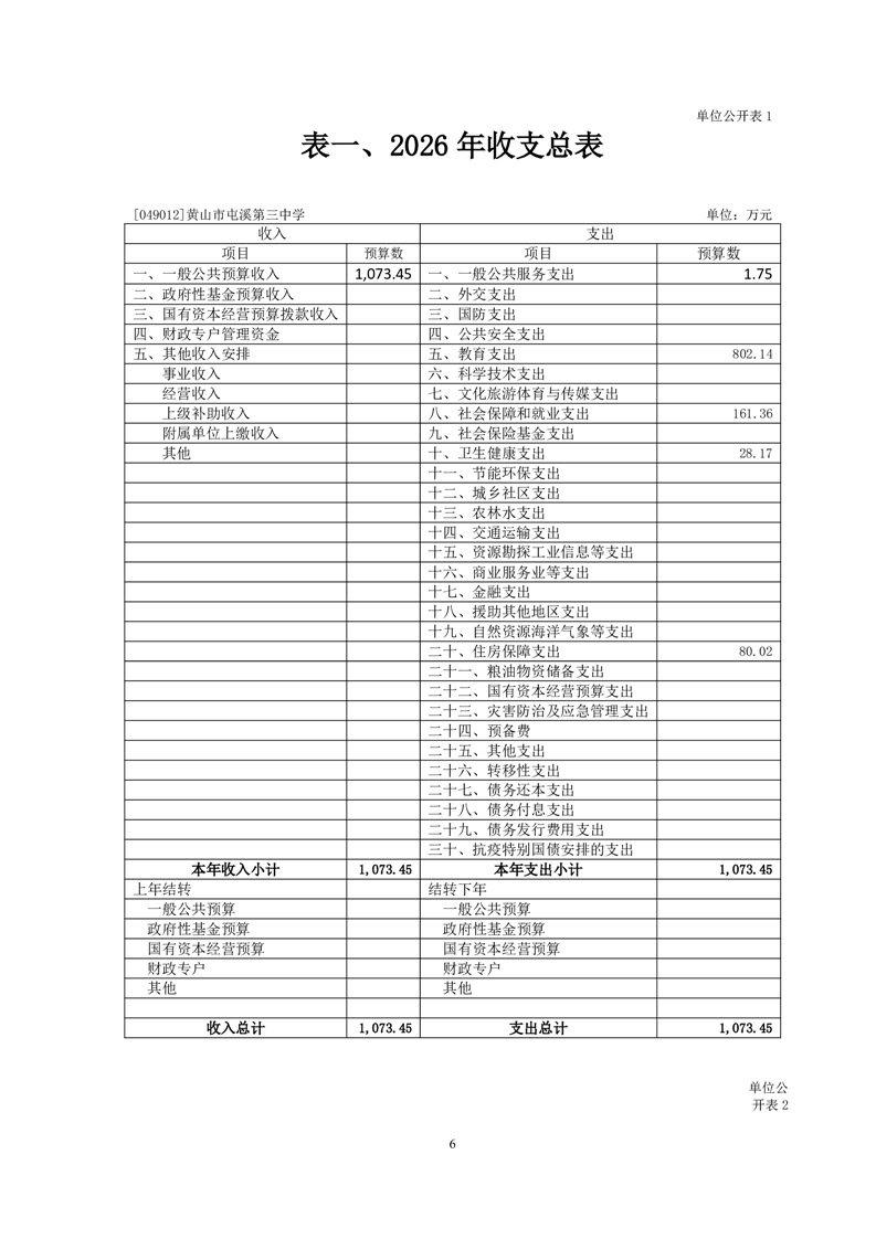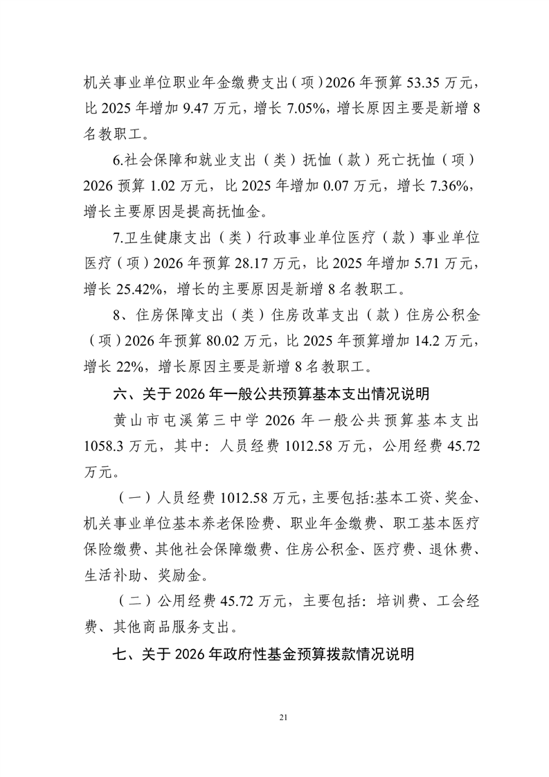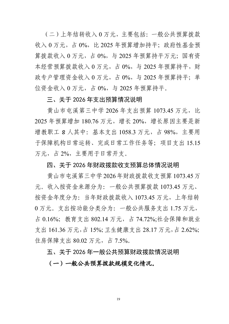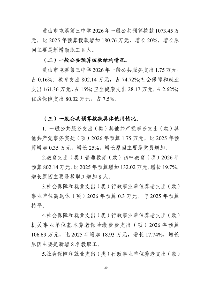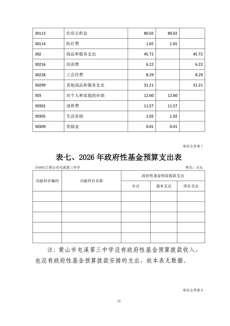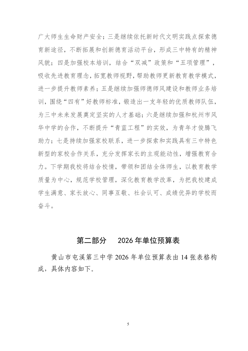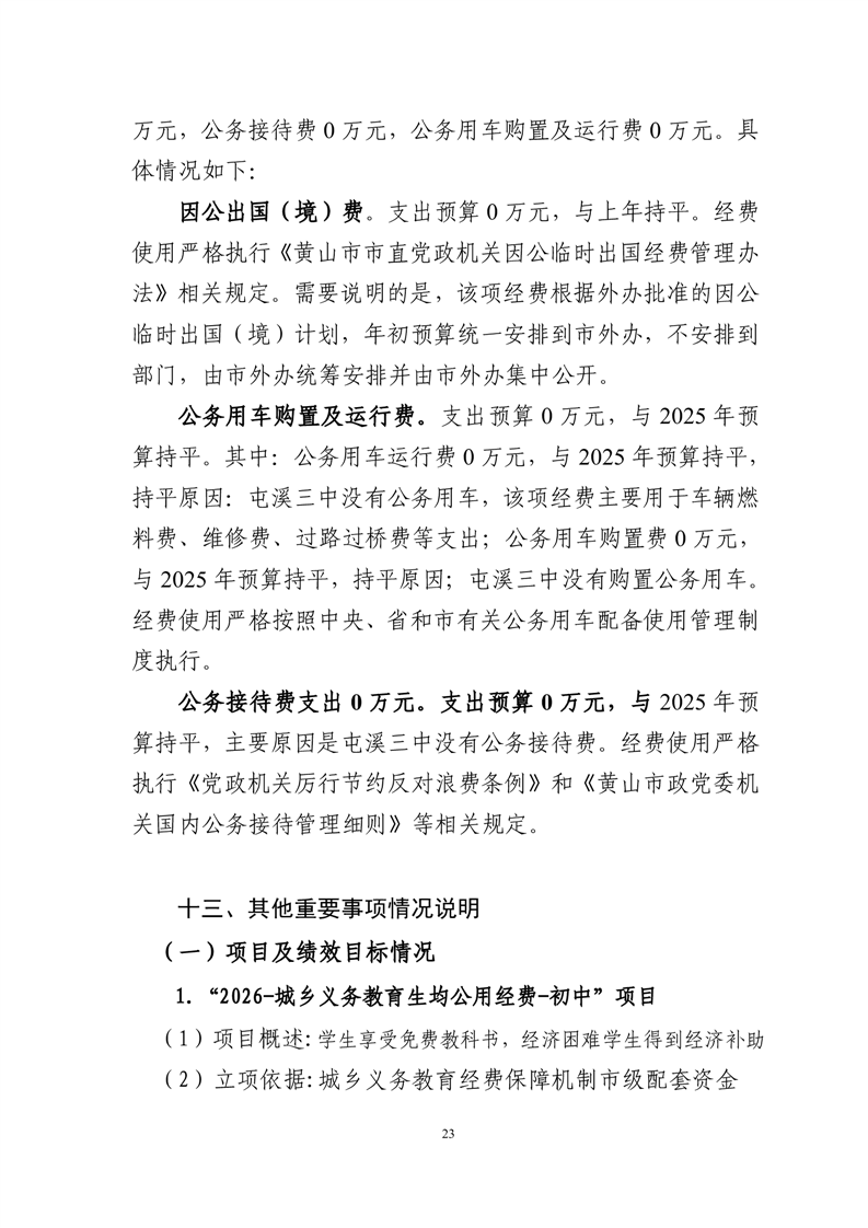 黄山市屯溪第三中学2026年单位预算