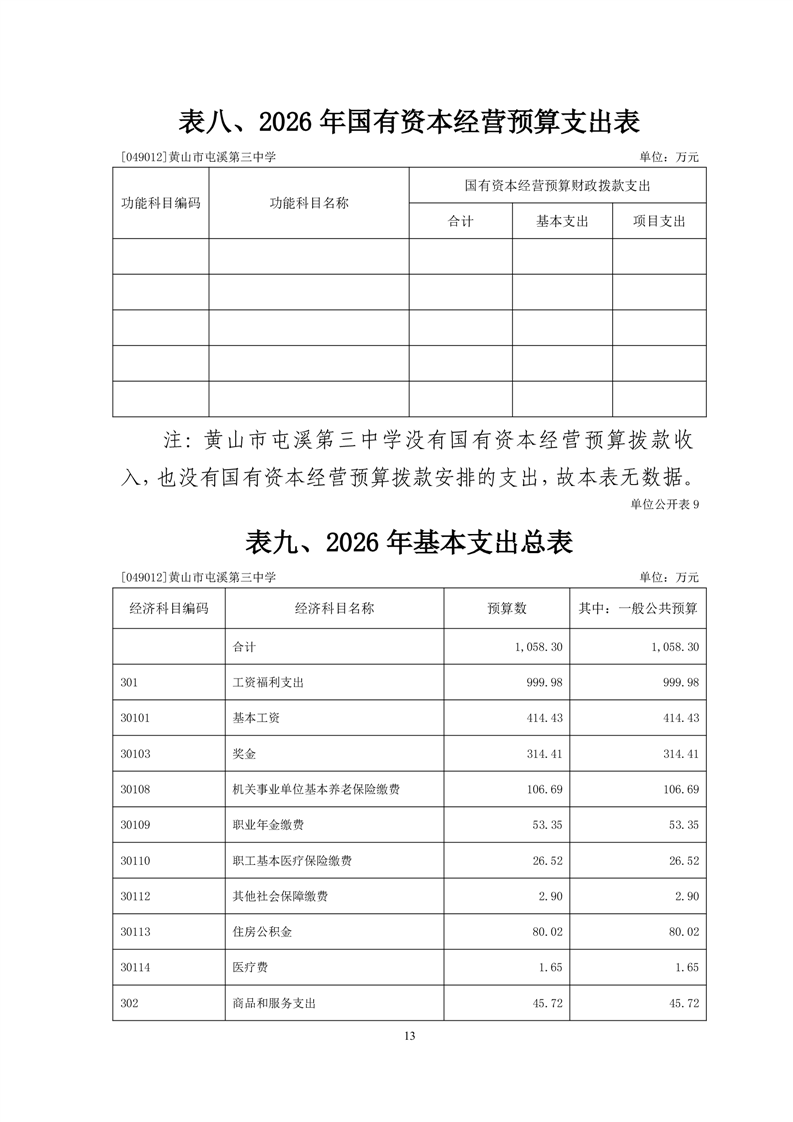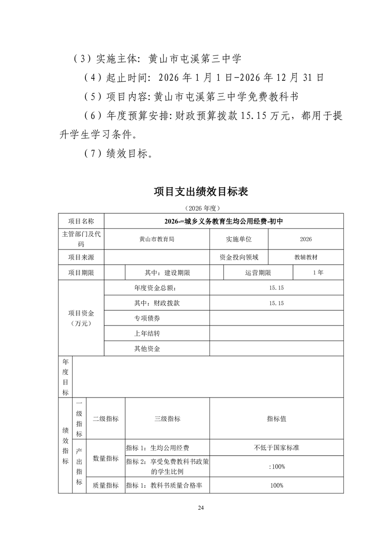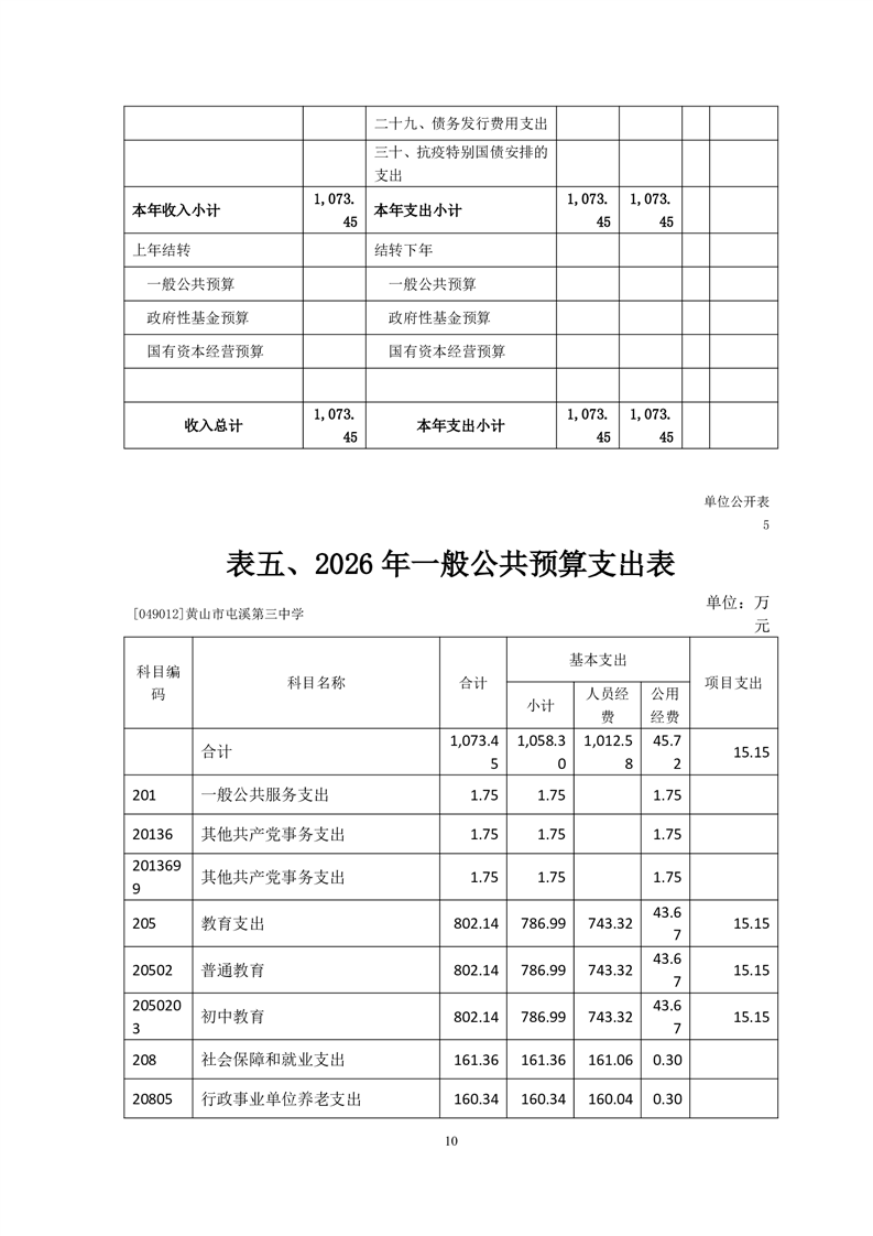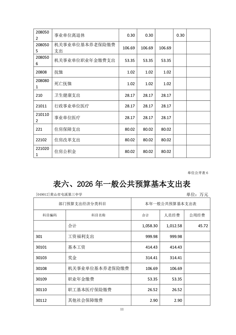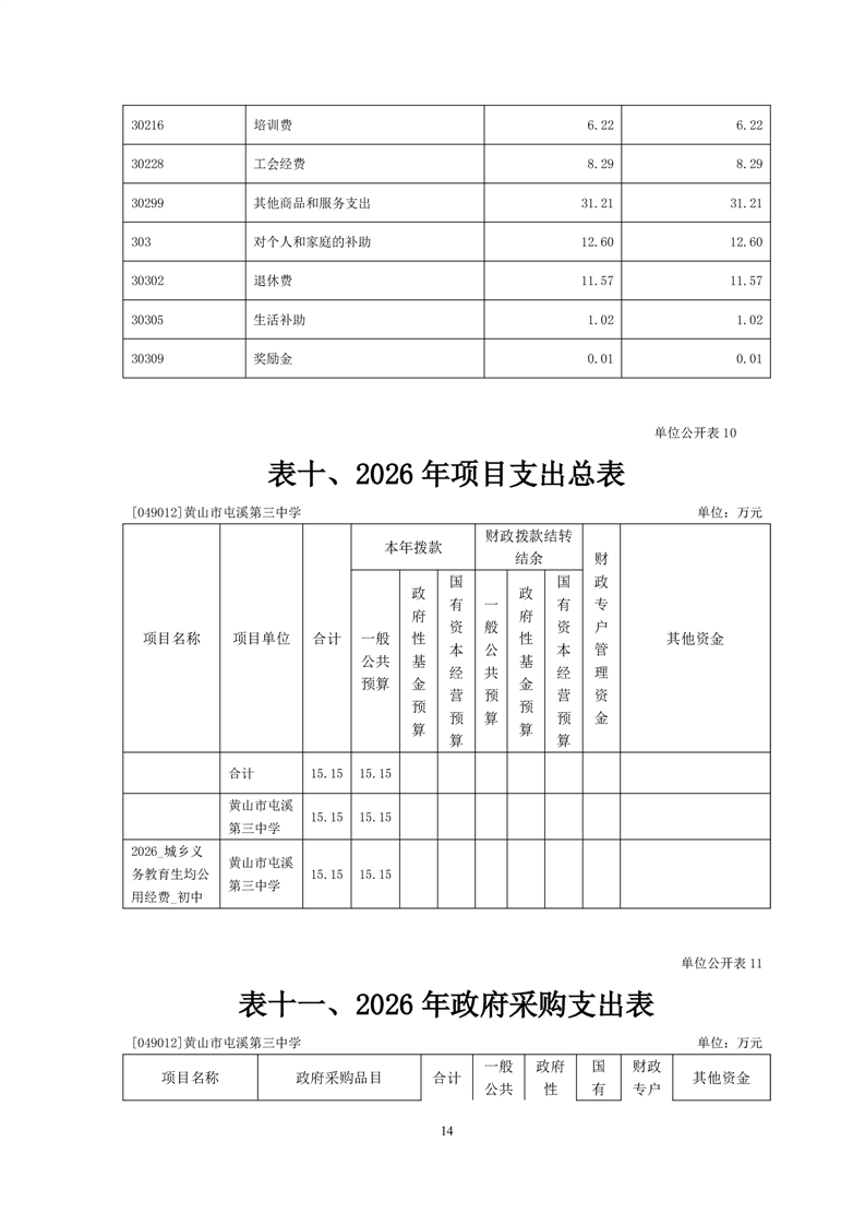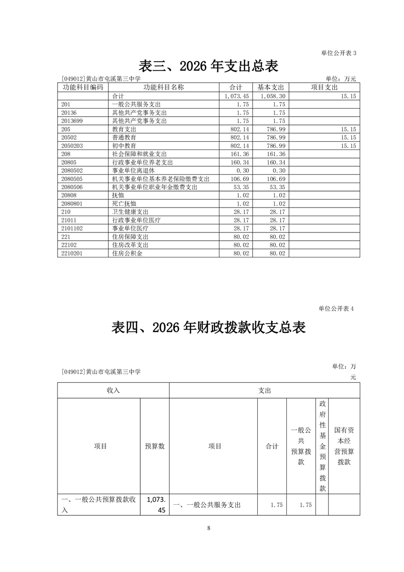 黄山市屯溪第三中学2026年单位预算