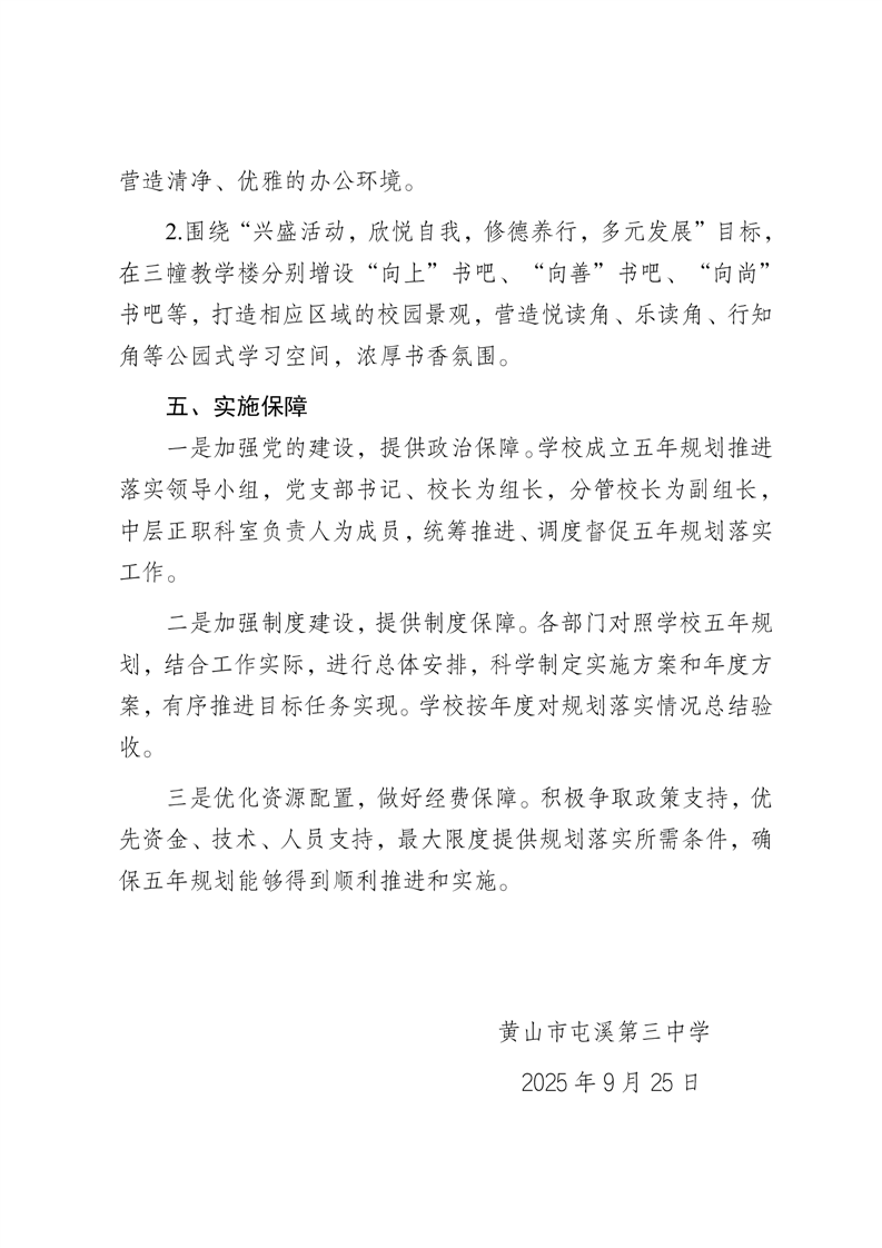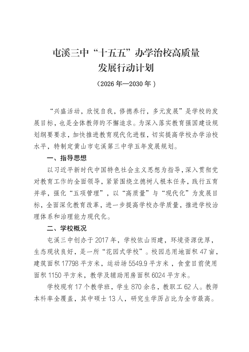屯溪三中“十五五”办学治校高质量发展行动计划