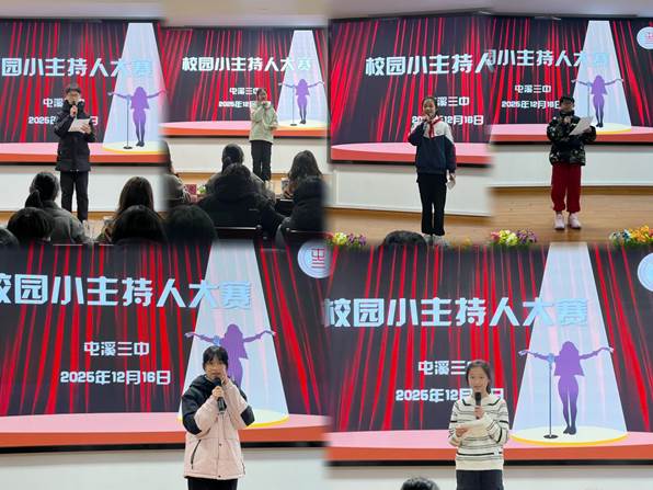 12月16日下午,屯溪三中校园小主持人比赛热烈开赛。来自各年级的参赛选手怀揣热爱登台,用自信的表达、饱满的热情展现青春风采,赛场内外洋溢着积极向上、互帮互学的文化氛围。