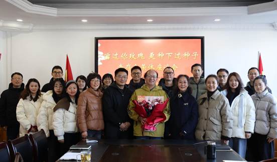 座谈会最后,学校特地为童校长送上了荣休纪念牌和鲜花,接着与会人员集体合影留念,现场洋溢着温暖与惜别的氛围。童存全校长虽然即将离开工作岗位,但他留下的亲切关怀、务实作风以及对教师成长的重视,已深深融入学校的精神脉络。这场温馨的座谈会,不仅是对一段旅程的圆满送别,更是对一种宝贵精神的集体致敬与传承。