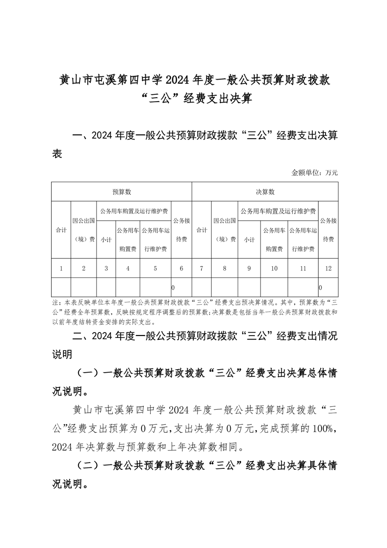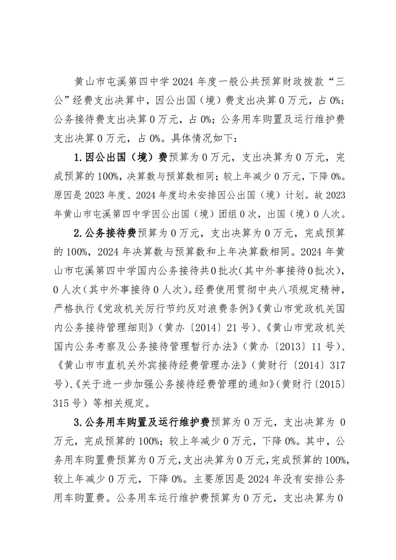 黄山市屯溪第四中学 2024 年度一般公共预算财政拨款“三公”经费支出决算