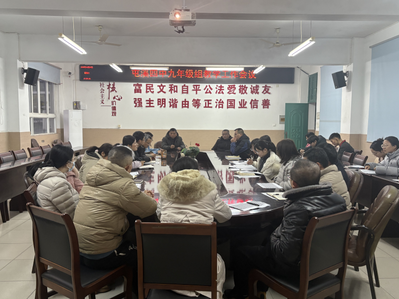 为精准复盘本学期九年级毕业班各项工作成效、查摆不足,明确后续工作方向、筑牢学业提质根基,12月30日下午,屯溪四中召开九年级毕业班教学工作会议。会议围绕“导-师-制+”教学质量提升、班级管理优化等核心议题深入研讨。校领导班子成员、教导处相关工作人员、九年级全体班主任及各学科备课组长参加会议。