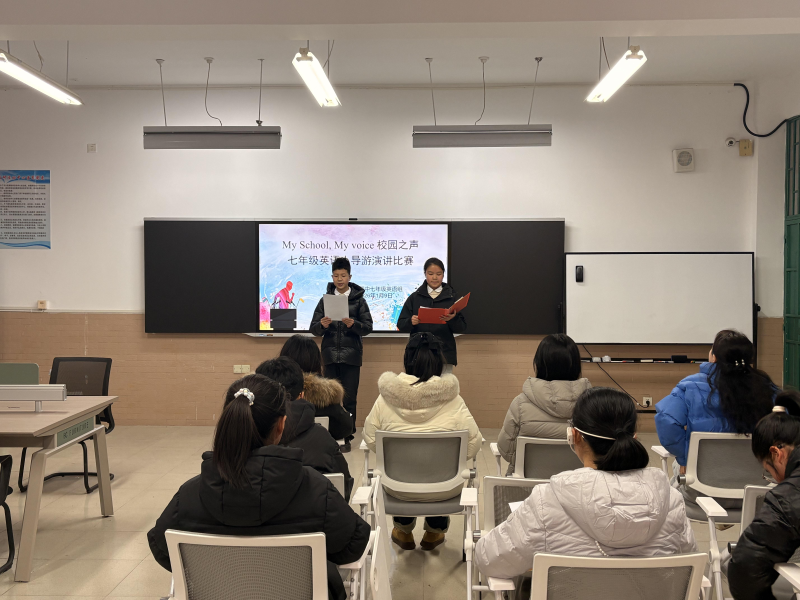 1月9日下午,屯溪四中教研活动室内掌声雷动、暖意融融,“My School,My Voice”英语演讲比赛在此精彩落幕。本次活动以“小导游云游校园”为创意形式,既是学子们展示英语口语的闪亮舞台,更是学校“导-师-制+”育人模式的生动实践——在专属导师的全程赋能下,同学们用流利英语诉说校园热爱,于实践中锤炼综合素养,让青春之声响彻校园。