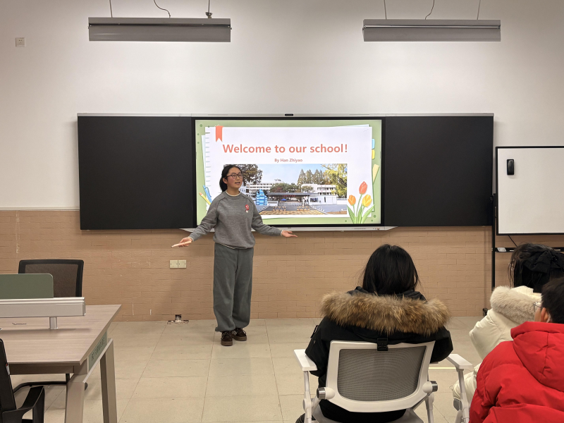“导-师-制+”英语学科素养的深度融合,为比赛注入了强劲动力。赛前,英语导师开启“一对一”精准指导模式:从演讲稿的主题构思、内容打磨,到英语发音的矫正、表达节奏的把控,再到演讲肢体语言的设计,进行了一对一、全过程的精准指导。演讲时,选手们紧扣主题,化身专业小导游,用流利的英语、标准的发音,从校园的整体布局出发,将校园风貌娓娓道来。有的选手聚焦400米塑胶跑道运动场,讲述课后运动的欢乐时光;有的介绍藏书丰富的图书馆,描绘沉浸阅读的美好场景;还有的细数艺术学科功能教室、多媒体录播教室等设施,展现学校良好的育人环境。活动中导师们与选手一起将校园生活体验转化为生动的演讲素材,让语言表达真正扎根于真实的生活场景。