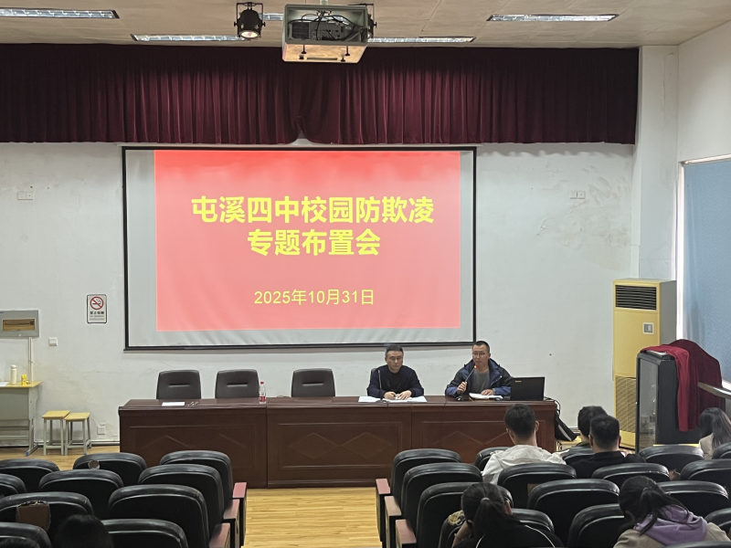为严格落实上级关于防范治理校园暴力、校园欺凌的工作要求,进一步筑牢校园安全防线,将学生欺凌防治工作落到实处,屯溪四中于10月31日下午在报告厅召开防暴力防欺凌专题布置会,全面部署校园欺凌防治工作。