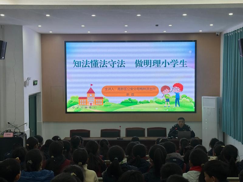 为深入推进"导-师-制+"育人体系建设,筑牢校园法治安全防线,增强学生的法律意识和自我保护能力,营造安全、和谐、文明的校园环境,12月15日,黄山市新潭小学邀请学校法治副校长、高新区公安分局梅林派出所谢政警官,为六年级学生带来了一场主题为《知法懂法守法,做明理小学生》的法治知识讲座。