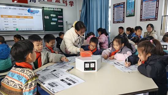 随后,活动移至科学实验室。歙县郑村中心学校的江远老师带来题为“介绍身边的智能帮手”的研讨课。江老师借助智能手表、音箱、智能台灯等实物,通过“猜一猜、试一试、找一找”,引导学生发现人工智能在生活中的广泛应用。孩子们眼中闪烁着好奇的光芒,纷纷举手分享自家智能设备的使用体验,课堂氛围活跃,不仅拓宽了学生视野,也激发了他们对未知世界的探索热情。