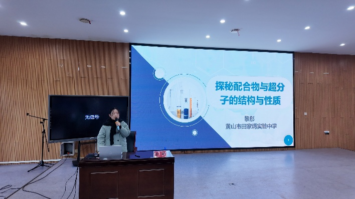 黄山市田家炳实验中学黎彤老师分享今年省赛获奖的《探秘配合物与超分子的结构与性质》大单元教学,以“胆矾失水、颜色变化、靶向药物递送”三大谜题为情境主线,搭建“结构→性质→平衡→功能”逻辑链条,通过实验探究、模型搭建破解抽象概念教学难点,将化学核心素养培育融入教学全过程。结合省优质课备赛经历,黎老师还分享了团队协作、教材深耕与教学创新的实战心得,为青年教师教学提升提供了可借鉴的思路,彰显青年教师的专业素养与探索精神。