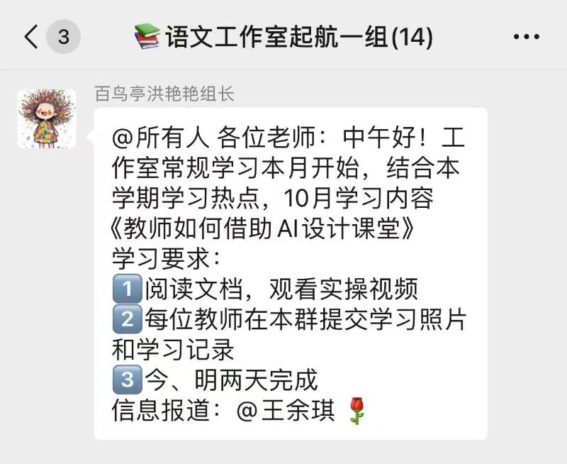 此次“AI+教育”研修学习,为焦斌徐颖工作室启航一组的教学实践注入了新活力。成员们纷纷表示,将以此次学习为起点,把研修所得转化为课堂实践,在“教”与“学”的变革中主动作为,以“认知导航员”的新身份,让AI赋能每一堂课,让核心素养落地每一位学生,为工作室的教育科研与教学创新写下生动注脚。
