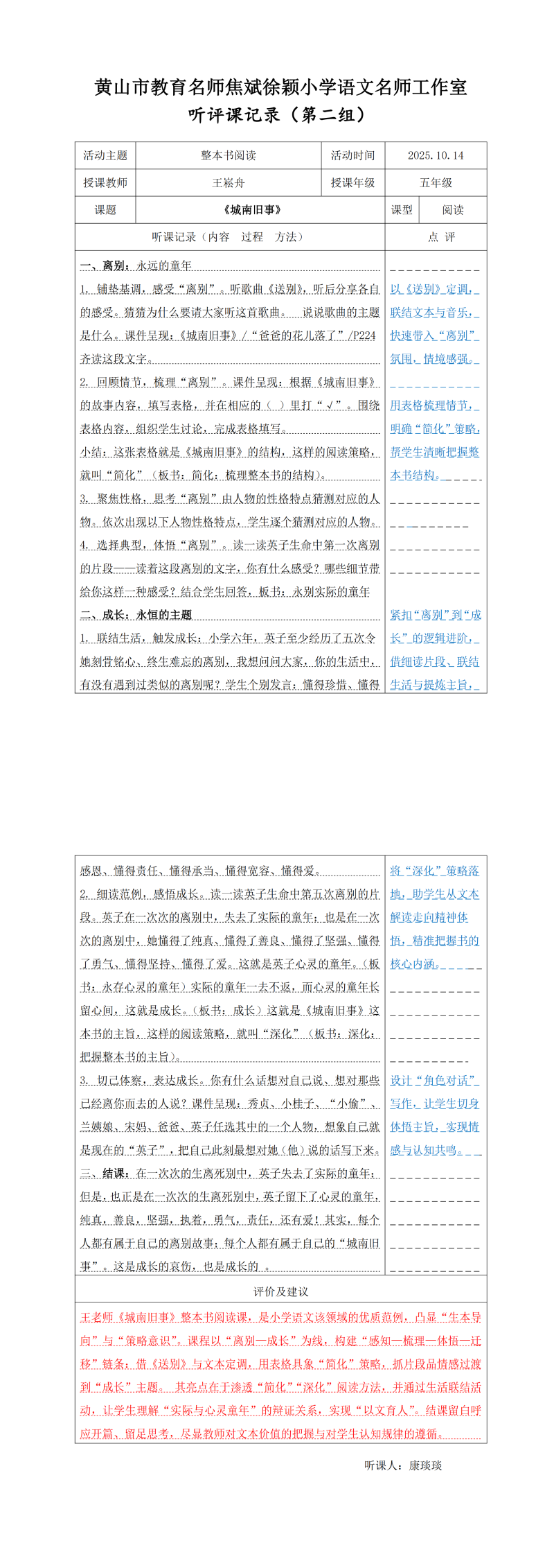 在童年的记忆里,总有一些离别,让我们悄然成长;在语文的课堂中,总有一种诗意,让我们深深沉醉。近日,焦斌徐颖名师工作室第二小组全体成员齐聚云端,共同观摩学习了王崧舟老师执教的整本书阅读课例《城南旧事》,开启了一场关于“离别”与“成长”的深度对话。